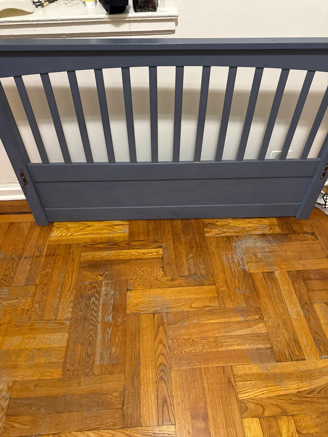 Good pre-owned condition. Paint was done at home (not factory), so there may be light brush texture or small natural imperfections, but the bed is clean, solid, and fully functional.