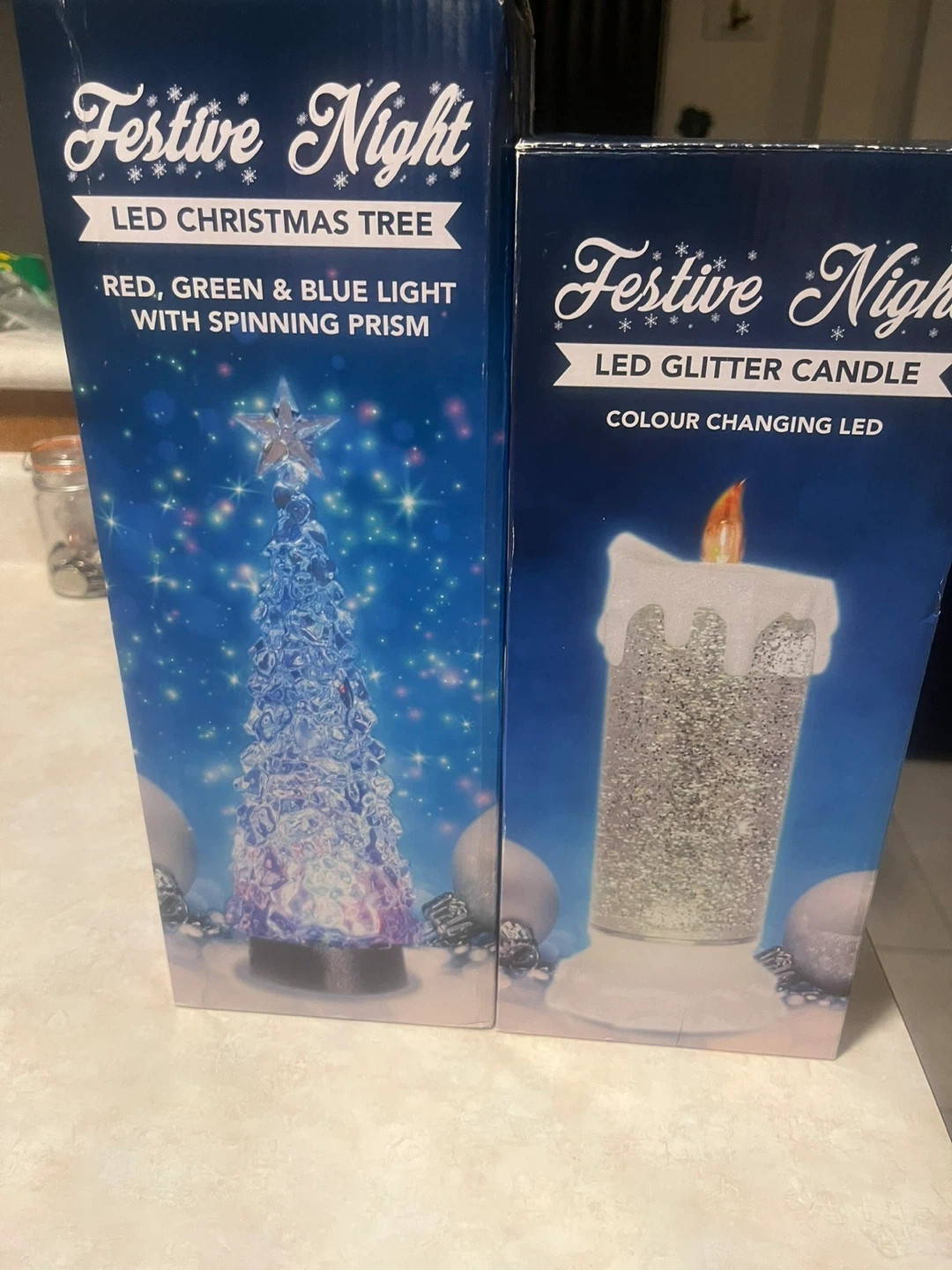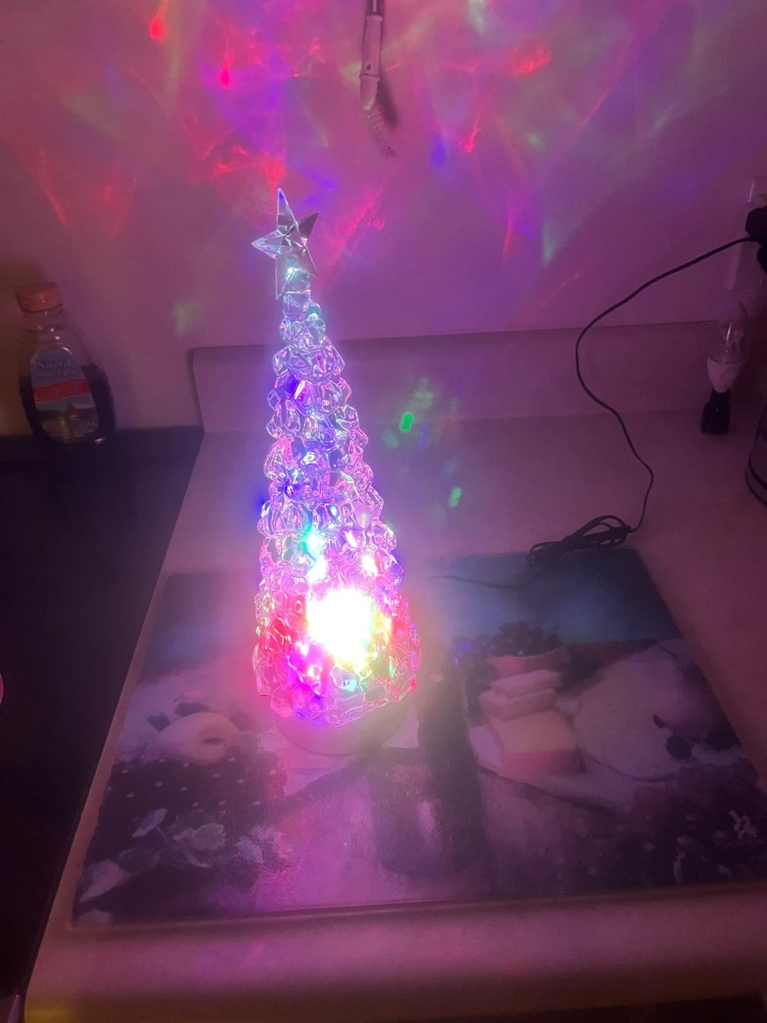 Selling a Festive Night LED Christmas Tree! It features red, green, and blue lights with a spinning prism. It's a fun and festive way to add some sparkle to your holiday decor