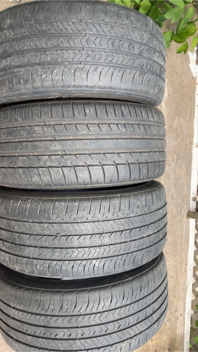 Selling a set of four All season used tires, including brands Triangle and Goodyear. Please see photos for condition and tread depth.