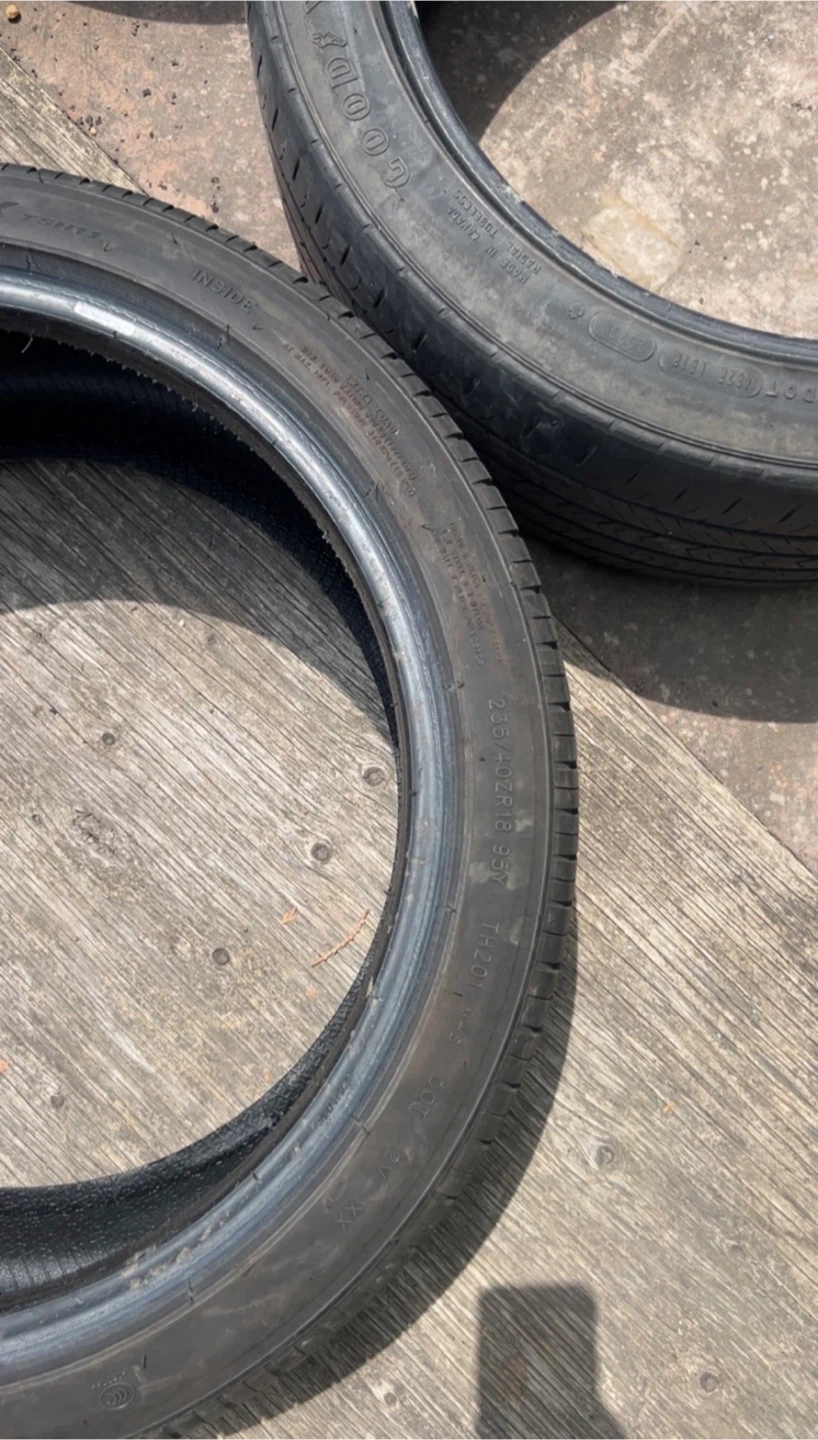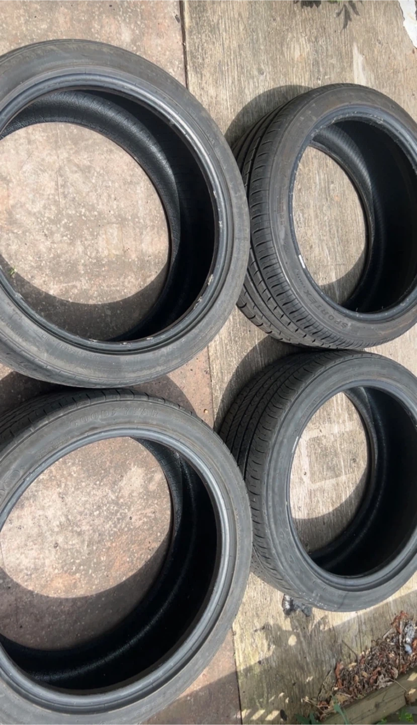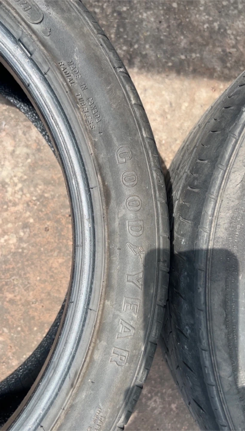 There are 3 Goodyear tires and 1 Triangle Brand tire. They're in used condition, but still have some life left in them!