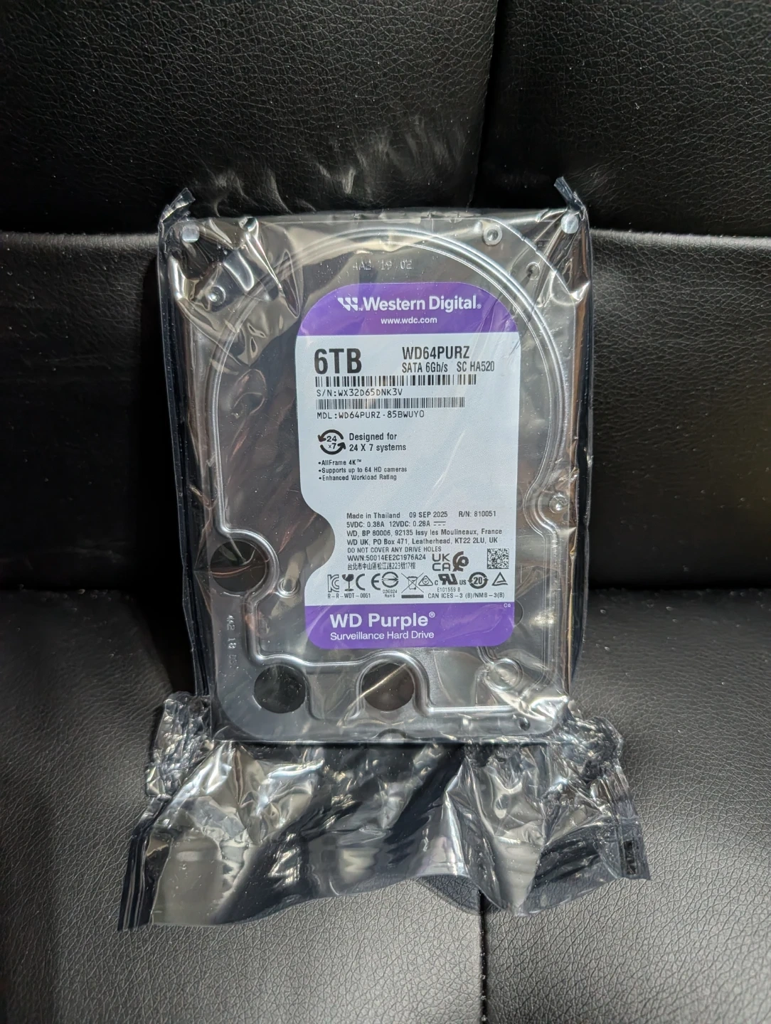 Brand new Western Digital 6TB WD Purple Surveillance Internal Hard Drive HDD. It features SATA 6 Gb/s and 256 MB Cache.$130