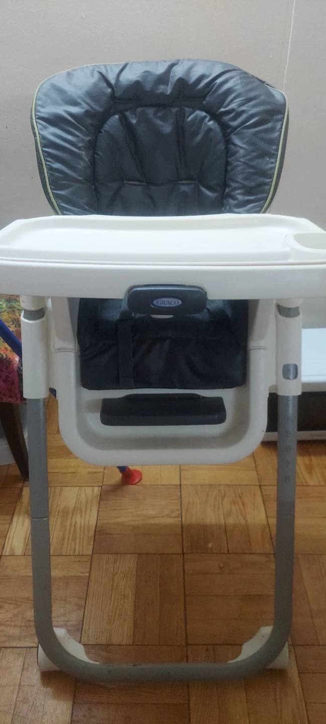 Selling a used Graco high chair. It's in good condition and ready for a new family. Perfect for feeding time and keeping your little one secure! Adjustable for infants to toddlers. Height adjustment and multiple uses.