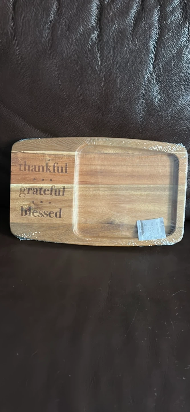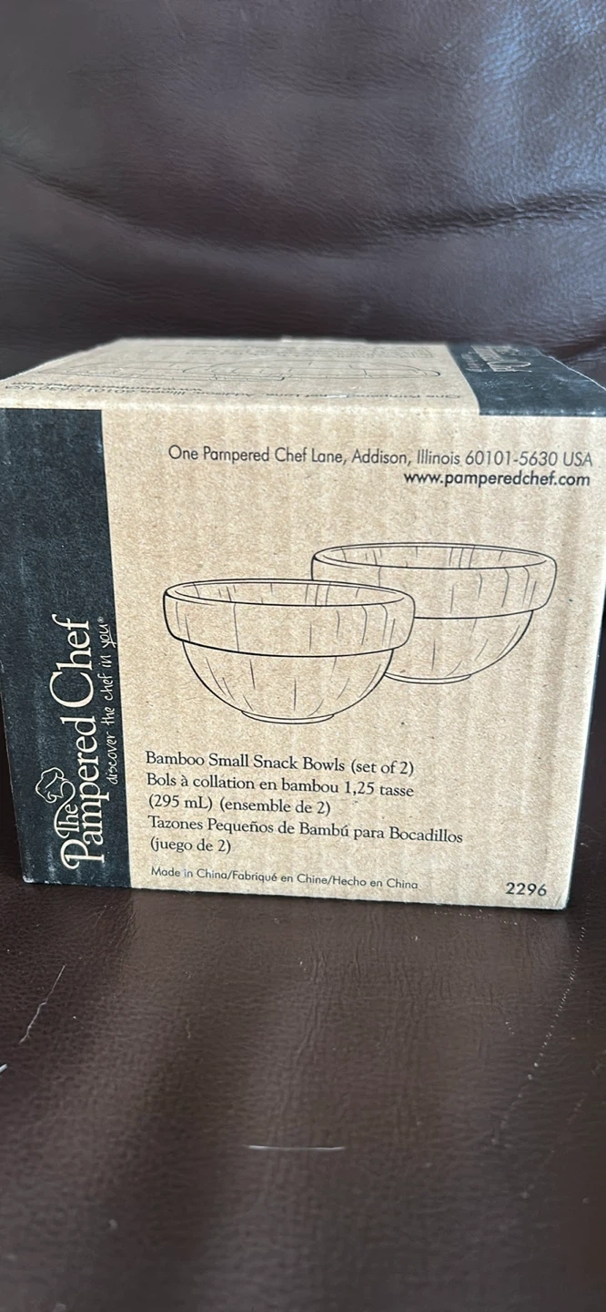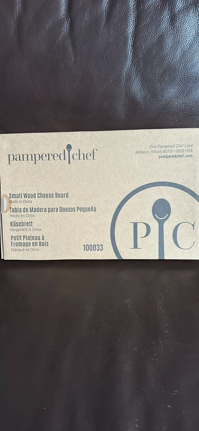 Selling a Pampered Chef cheese boards and bamboo bowls.