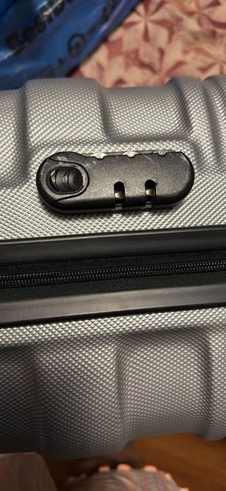 Used small carry on luggage. 21.5*14*9 inches. Lock broken but zips, handle, wheels and inner working is still perfect. Can use with an external TSA padlock and will be good as new.