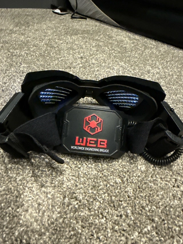 Direct from the Disney World store in Florida! Become your friendly neighbourhood Spiderman with this WEB Power Band, straight from WEB Tech. These light up goggles are in excellent condition, but work perfectly. They're just waiting to help you create your very own Spidey adventures! * Authentic WEB Tech Design * Light-Up Goggles