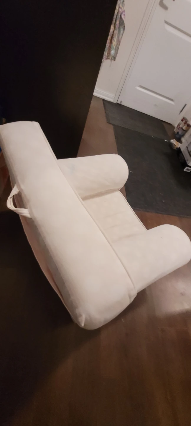It's in good condition and perfect for a little one's reading nook or playroom. The chair is soft and comfy, making it a great spot for kids to relax. Well-loved by my kid. No pets/smoke/accidents. Needs a bit of oxi clean to get the marker off cuz well...kids ๐