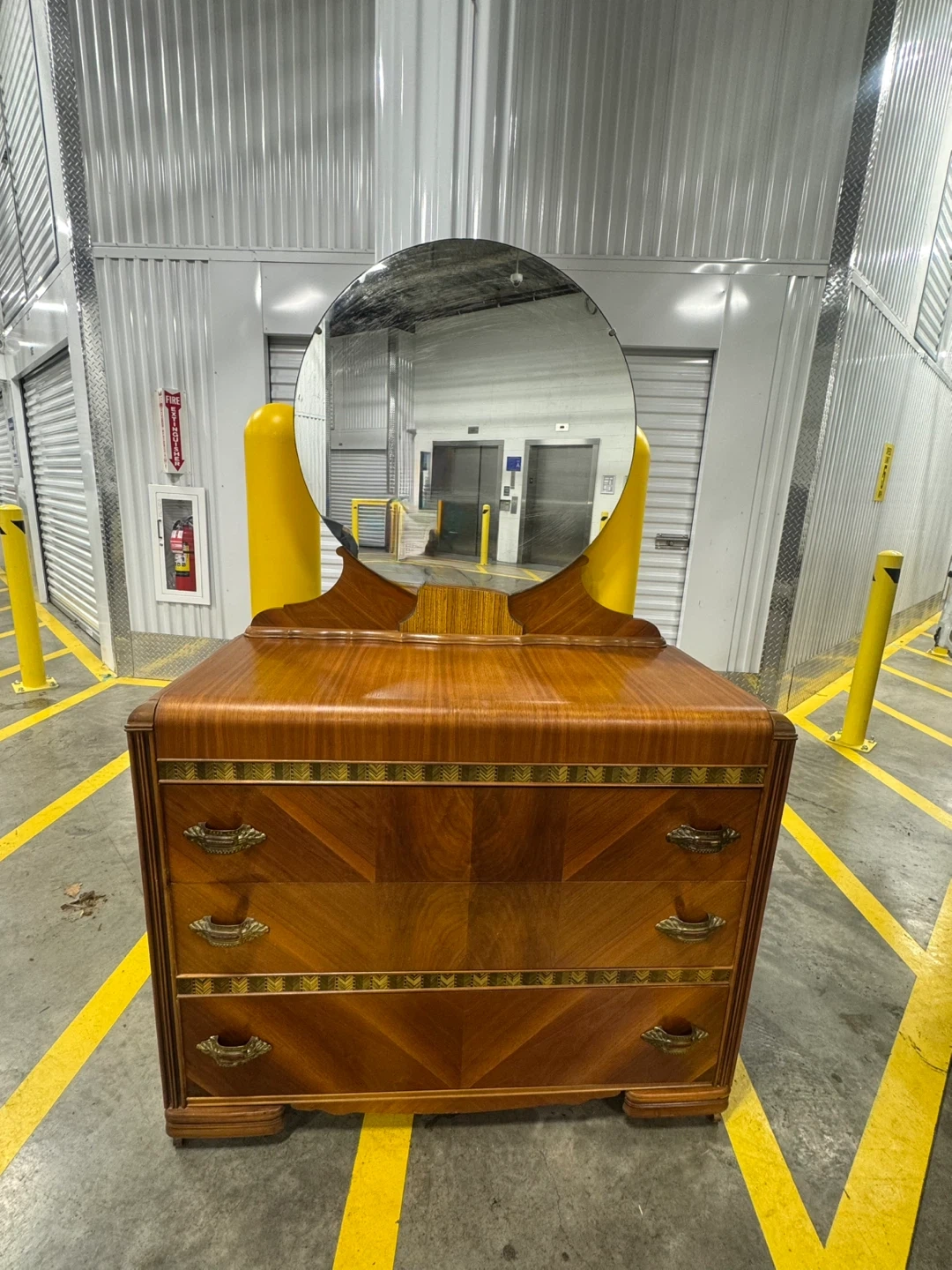 Selling a vintage vanity dresser with a round mirror. This piece features a beautiful wood finish and classic design. Perfect for adding a touch of retro charm to your bedroom or dressing area!