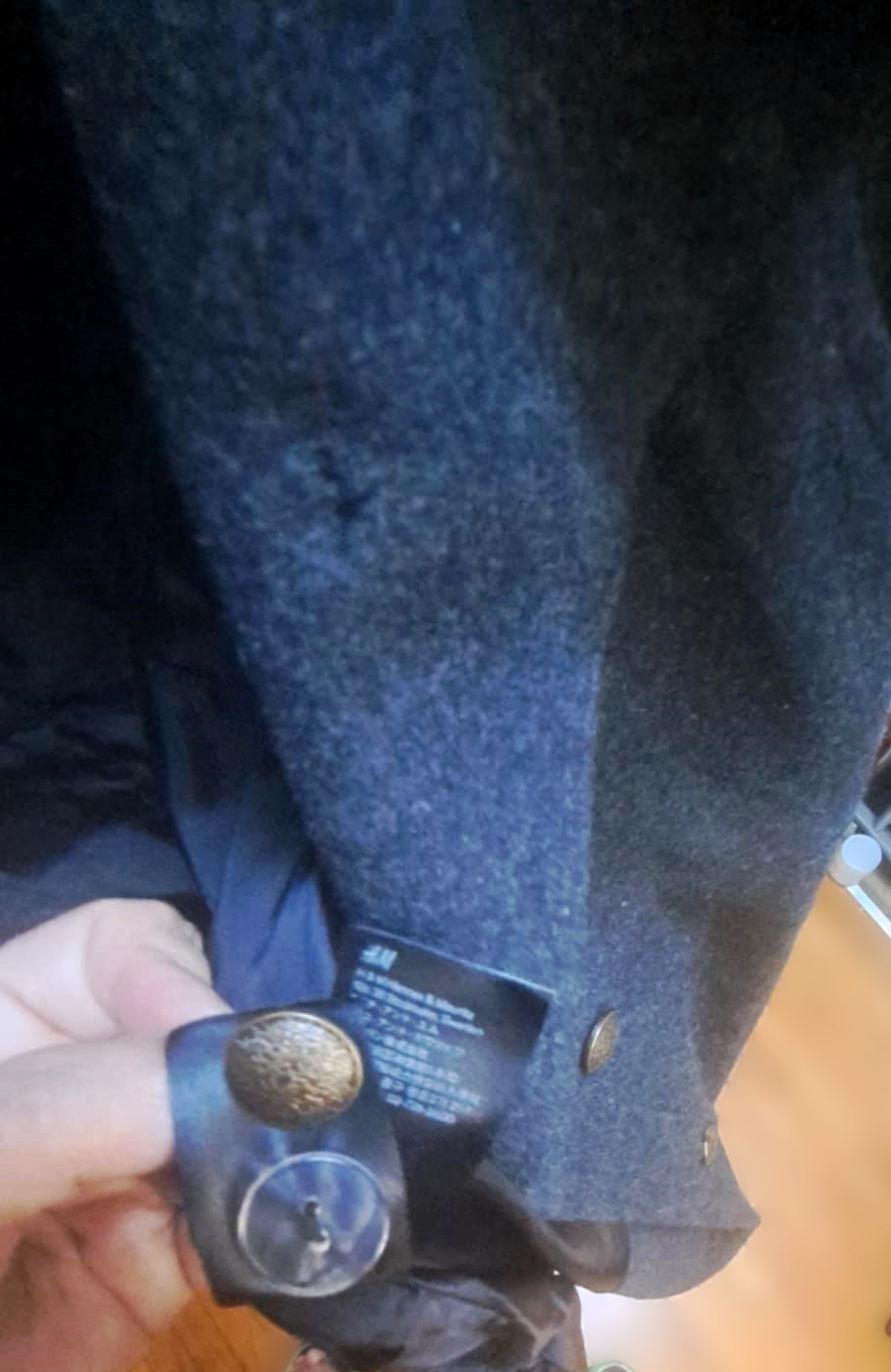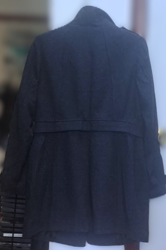The design features a high stand collar, epaulets on the shoulders, a double-breasted button closure, and tab details on the cuffs. In excellent condition. Well kept and cared for beautifully.