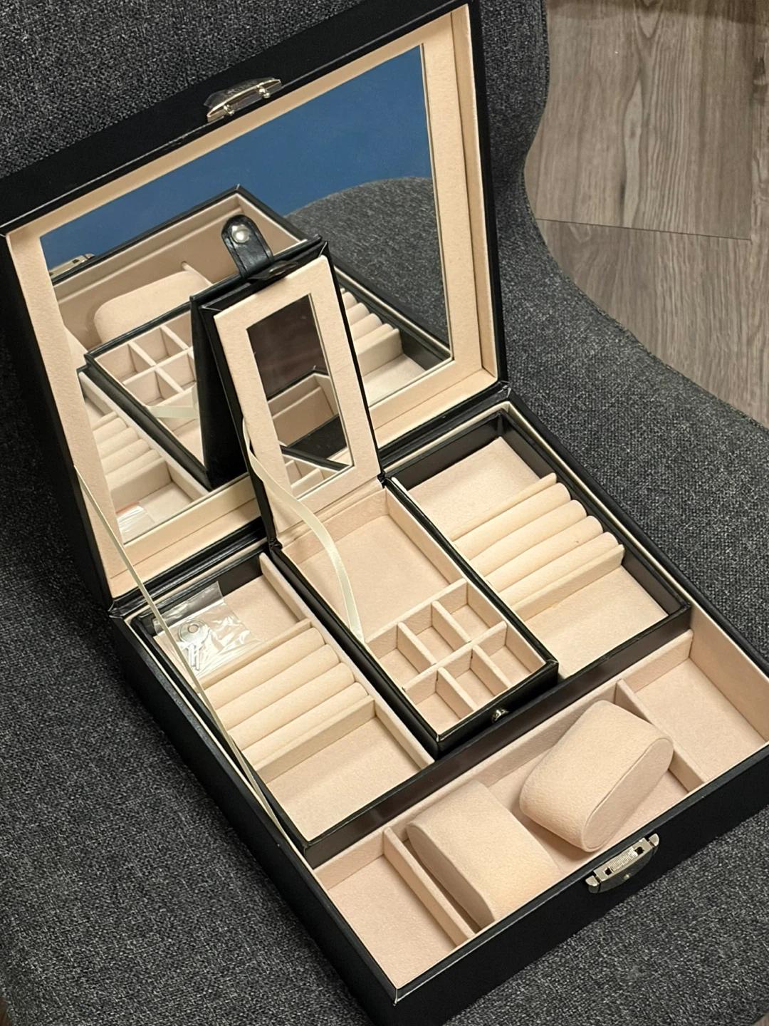 Black Jewelry & watch Box with Mirror