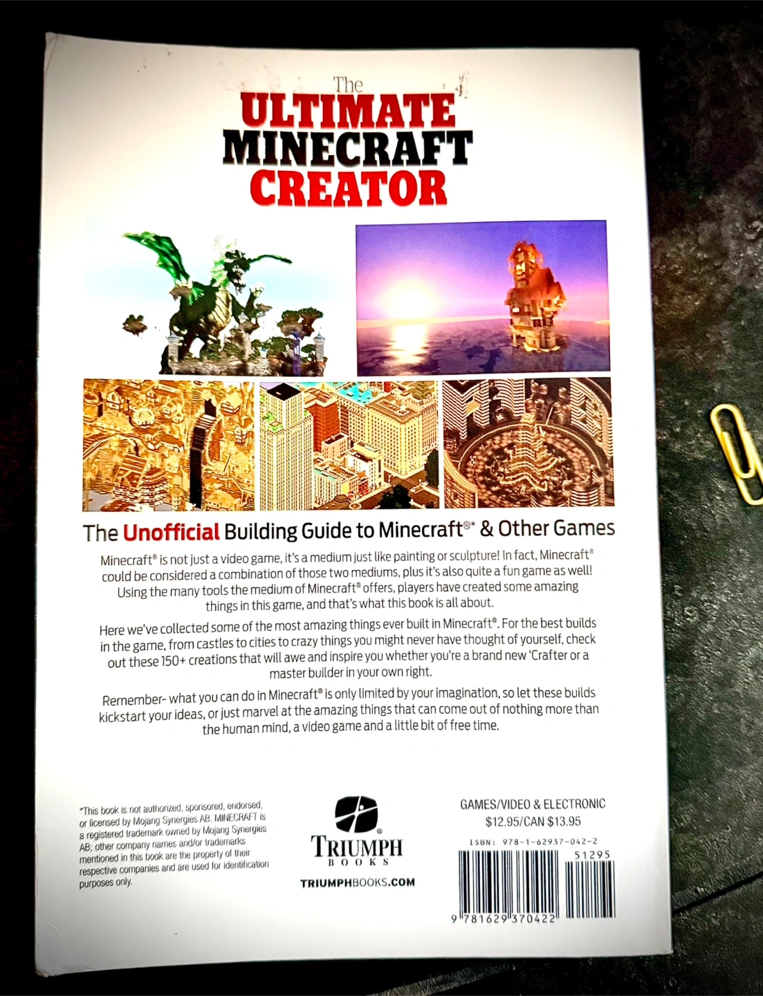 #gifting Free The Ultimate Minecraft Creator book, which includes a gallery of the game's coolest buildings! It's the unofficial building guide to Minecraft and other games. Get inspired by the amazing things you can build in Minecraft! ๐ŸŽ„๐ŸŽ„๐ŸŽ„๐ŸŽ„๐ŸŽ„๐ŸŽ„๐ŸŽ„๐ŸŽ„ โ—๏ธ See details and additional services such as gift wrapping and local delivery in my Bio ๐Ÿ™ ๐Ÿ’ธCash only unless contacted prior to purchase. In extraordinary or special circumstances at my discretion. Merry Christmas and Much Health in 2026!! Rhonda ๐Ÿ’ซ