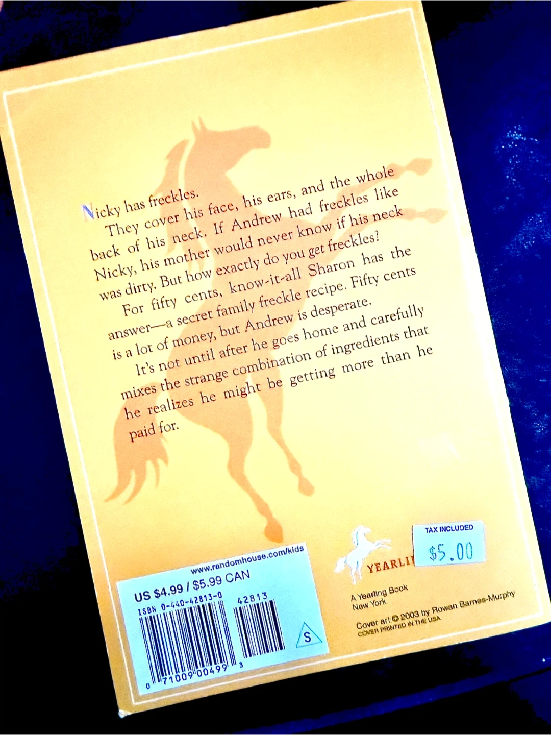 Freckle Juice by Judy Blume! It's a cute story about a kid who wants freckles. The book is in great shape and ready for a new reader.