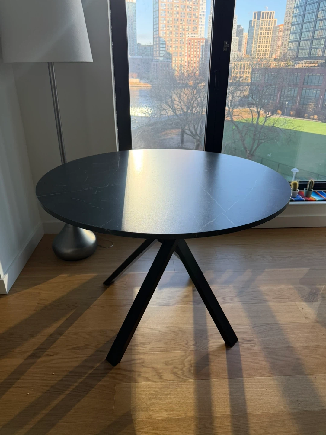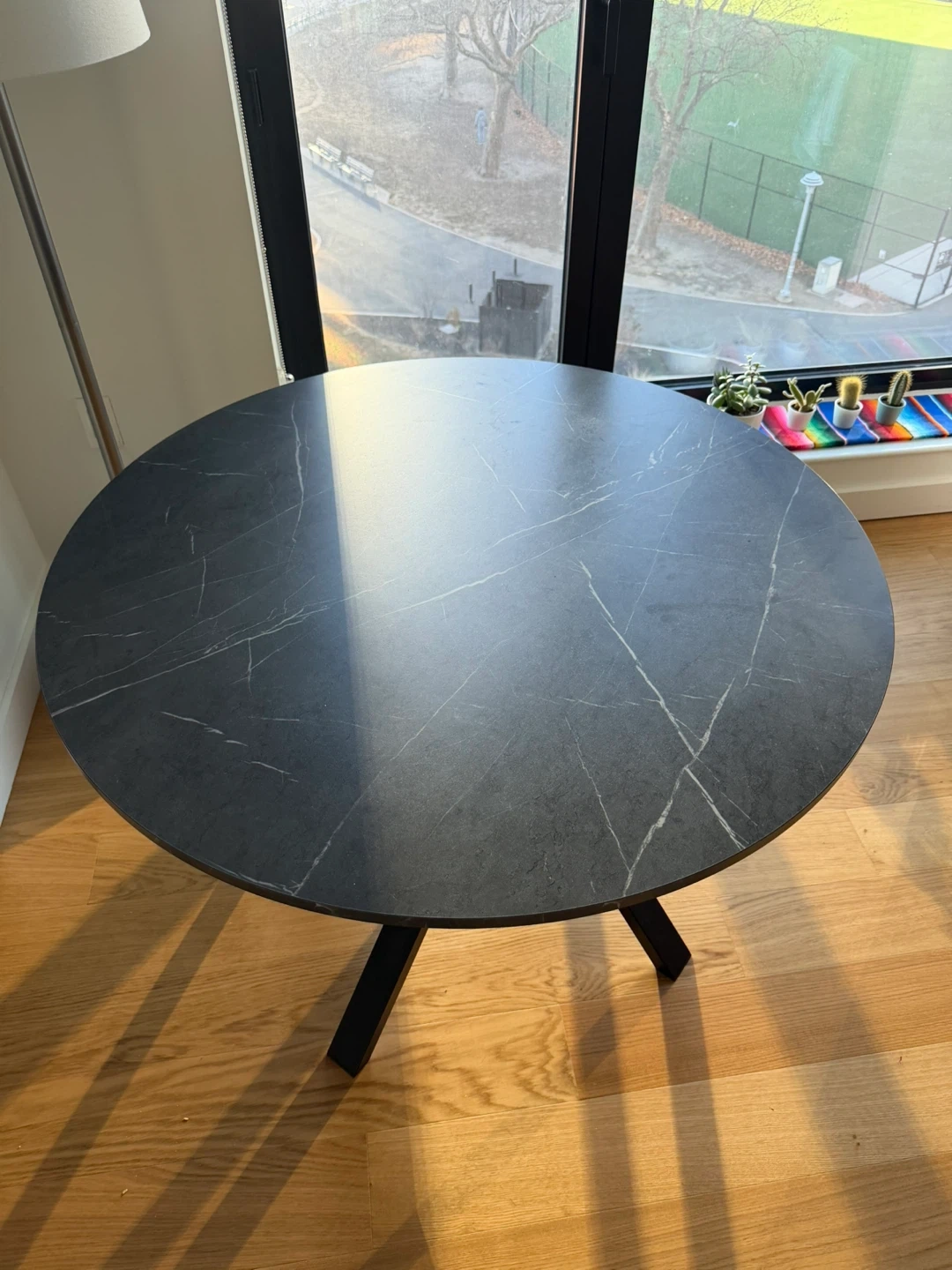 Selling MARIEDAMM Ikea marble effect round table! It's in great condition and would be a perfect addition to any dining space. The sleek design and sturdy construction make it both functional and aesthetically pleasing. Feel free to reach out if you're interested! No time wasters pls.