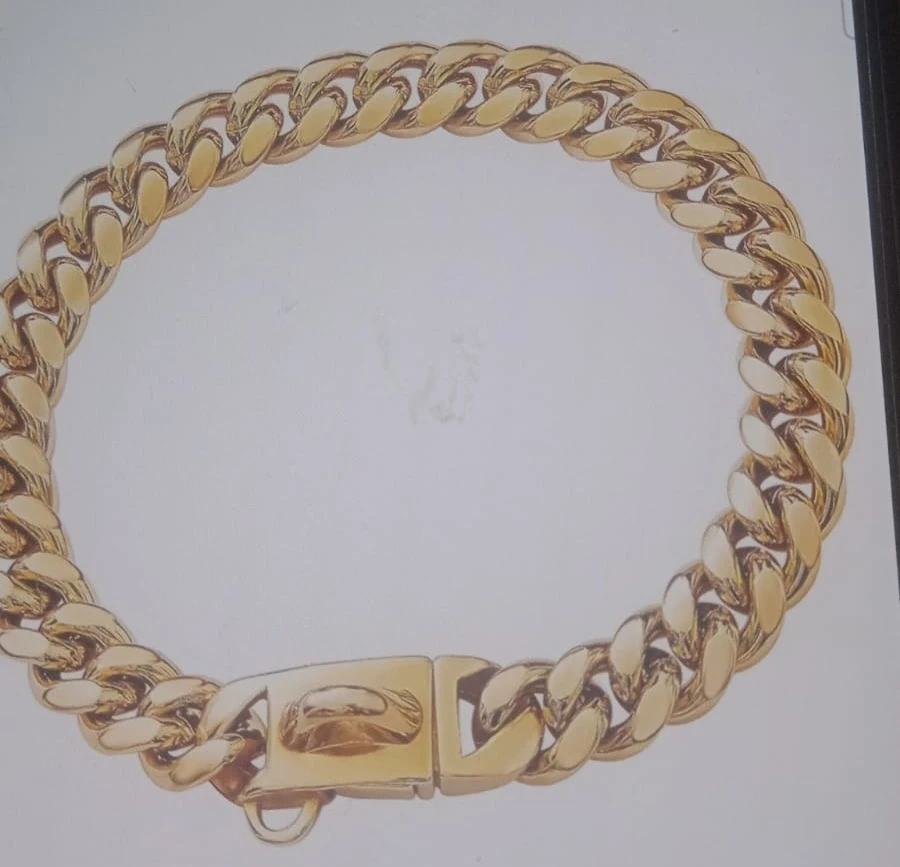 The strong golden chain dog collar is for Small Medium and large dogs like Rottweiler,American Bully, German Shepherd, Husky, Newfoundland, Belgian Malinois, Pitsky Saint Bernard, English Bull and so on. This's a great gift and your dog will love it very much.