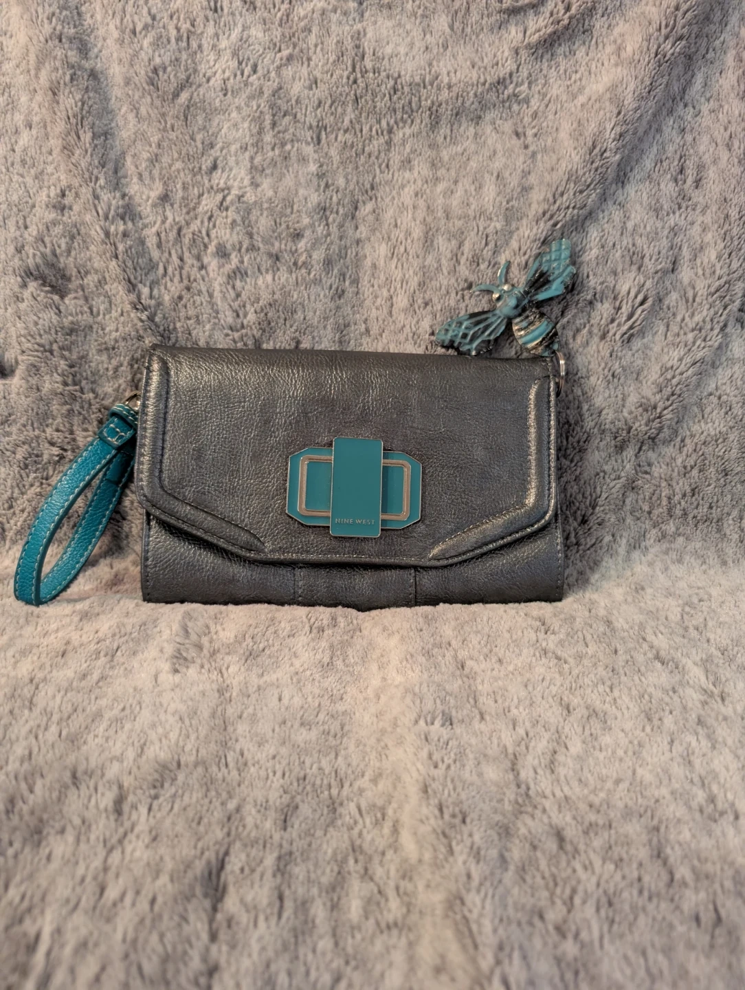 Nine West Grey Wallet with Teal Accents