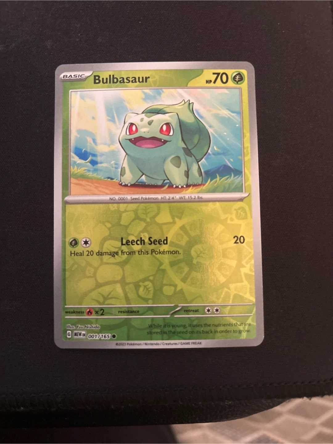 Selling a Bulbasaur Pokemon card! It's card number 001/165 from the set. A great addition to any collection!