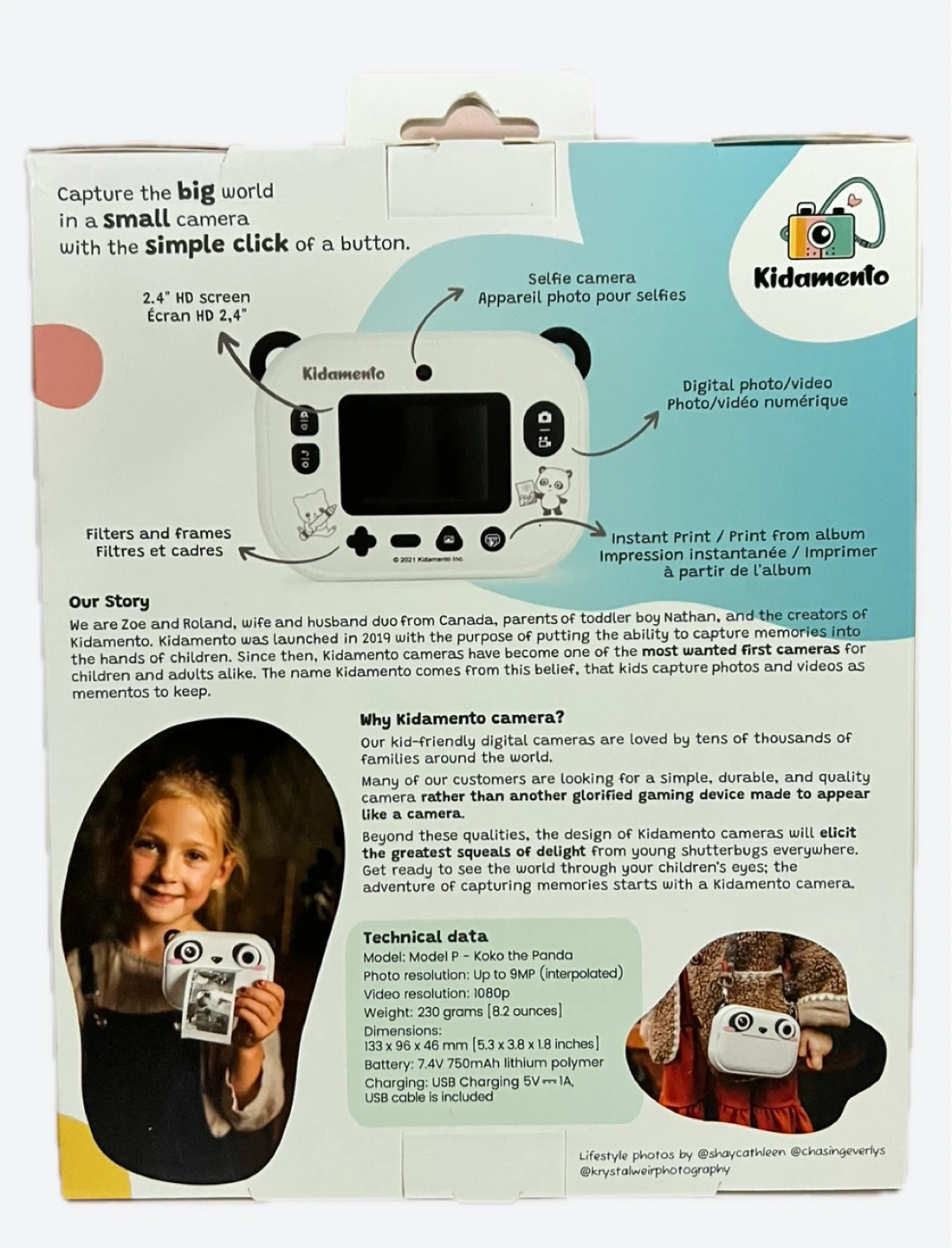 Brand new, sealed box - Kidamento Instant Print Kids Digital Camera & Video Camcorder with Selfie Camera, Scavenger Hunt Photobook, 32GB Memory Card - Model P Koko The Panda
