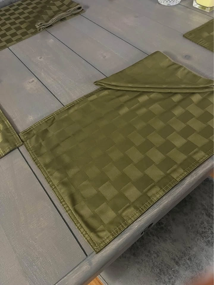 Set includes 6 placemats and 6 napkins. In good condition. Thick/heavy and durable material. Machine washable. Doesn’t need this anymore since it's for a 6 seater, otherwise it's perfect!
