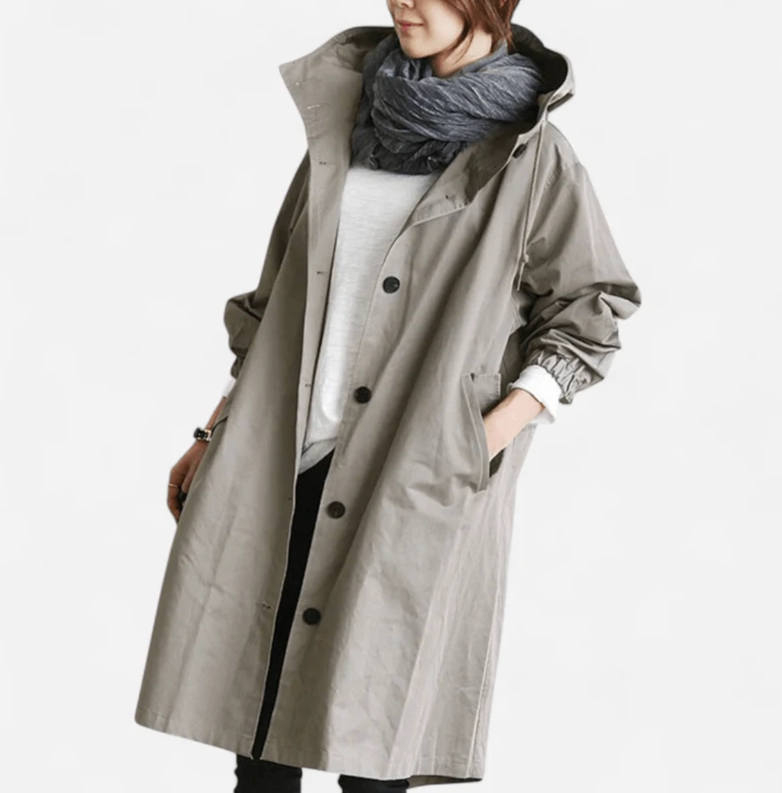 Material: 100% water-repellent polyester, lightweight and durable. Length: Mid-length. Hood: Removable hood for added flexibility. Closure: Double-breasted closure. Care: Machine washable at low temperature. Retails for $150.00 CAD Promotional price $74.95 CAD. I ordered size M but the sizing from this webstore is too small. Is a small size.