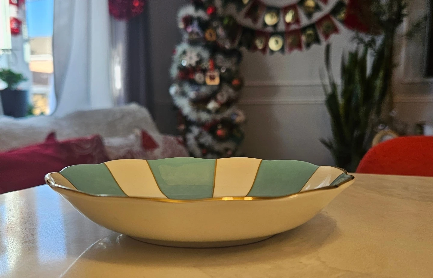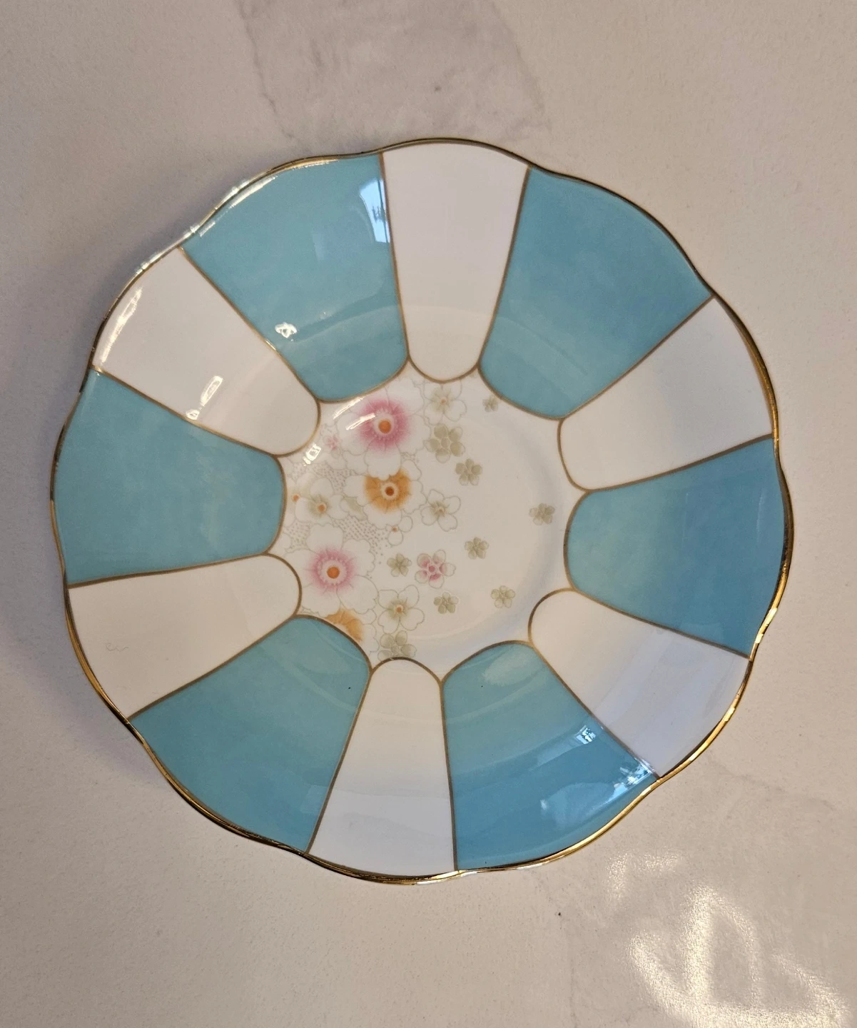 Selling a Royal Albert dish from the 1930s Memory Lane series! It features a beautiful floral design with light blue and white accents, trimmed with gold. This dish is a lovely piece for display or for serving snacks and treats