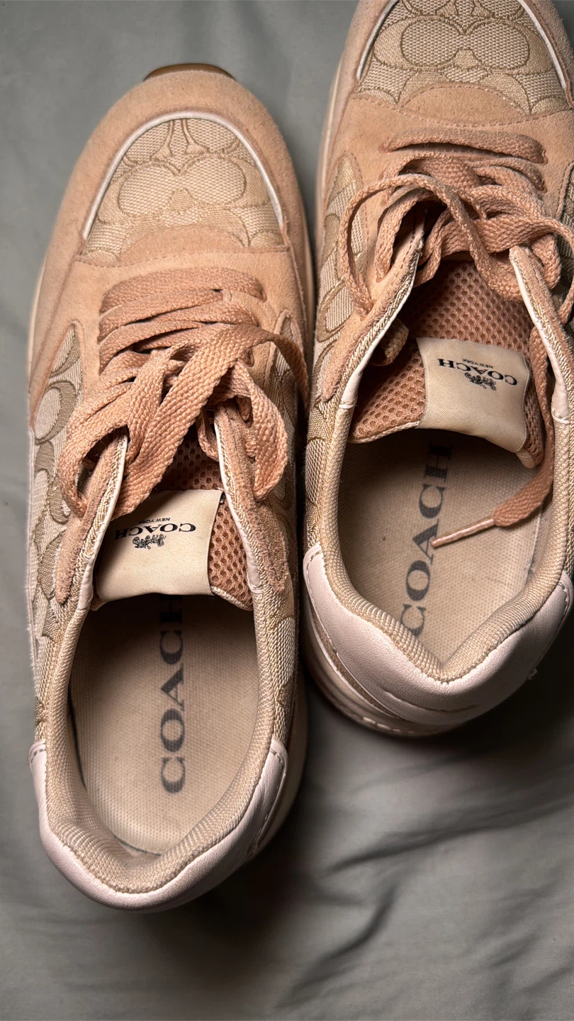 Step into style with these gently used Coach C152 Tech Runner sneakers in a women's size 9.5, which translates to a men's size 8.5. These stylish, monogrammed sneakers are in great condition (as seen they were worn once) and ready for a new adventure. They are perfect for adding a touch of luxury to your casual look!