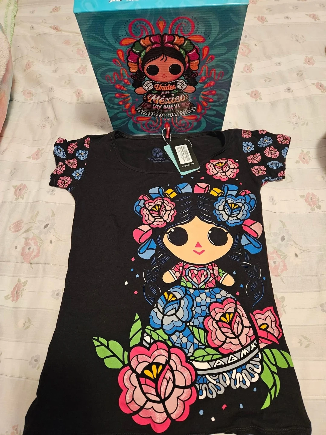Brand new with tags, this Ay Guey Maria t-shirt is looking for a new home! It's black with a colourful Maria design on the front. Comes with the original box!