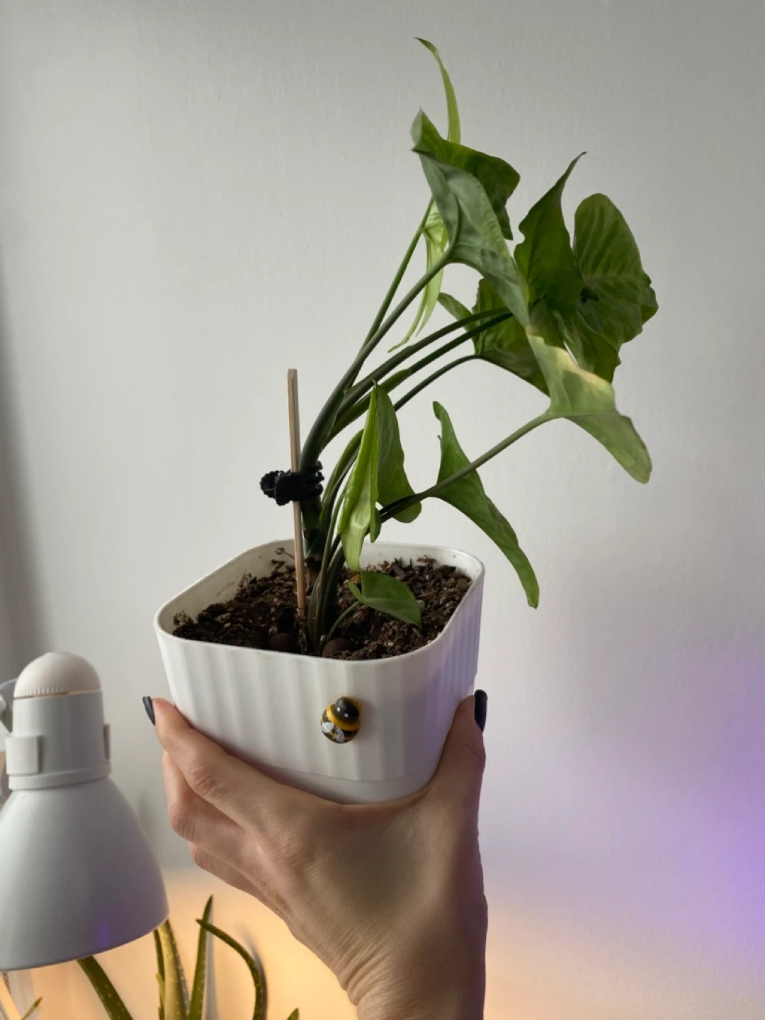 Selling a healthy syngonium plant in a white pot! It's a beautiful addition to any indoor space and easy to care for