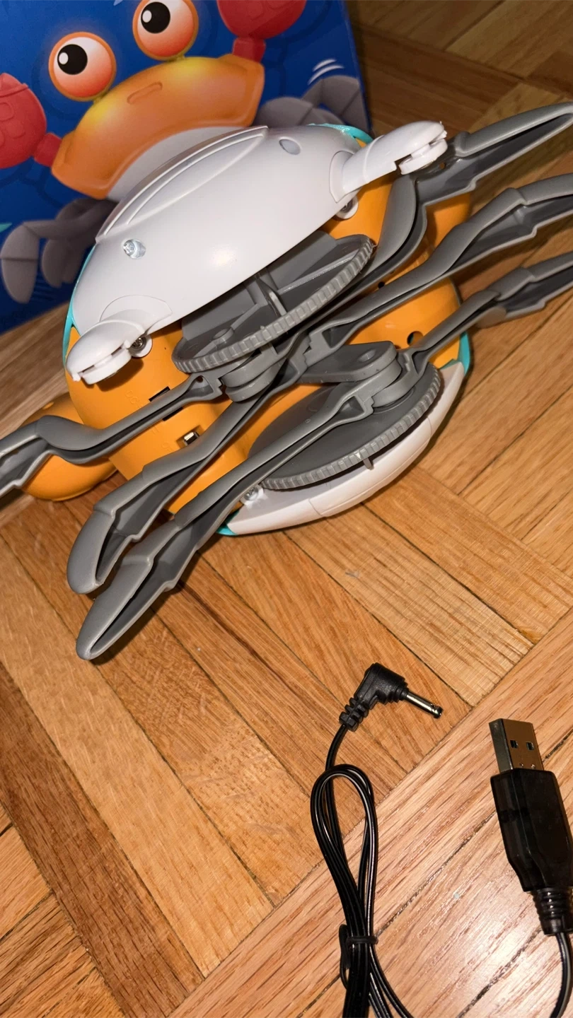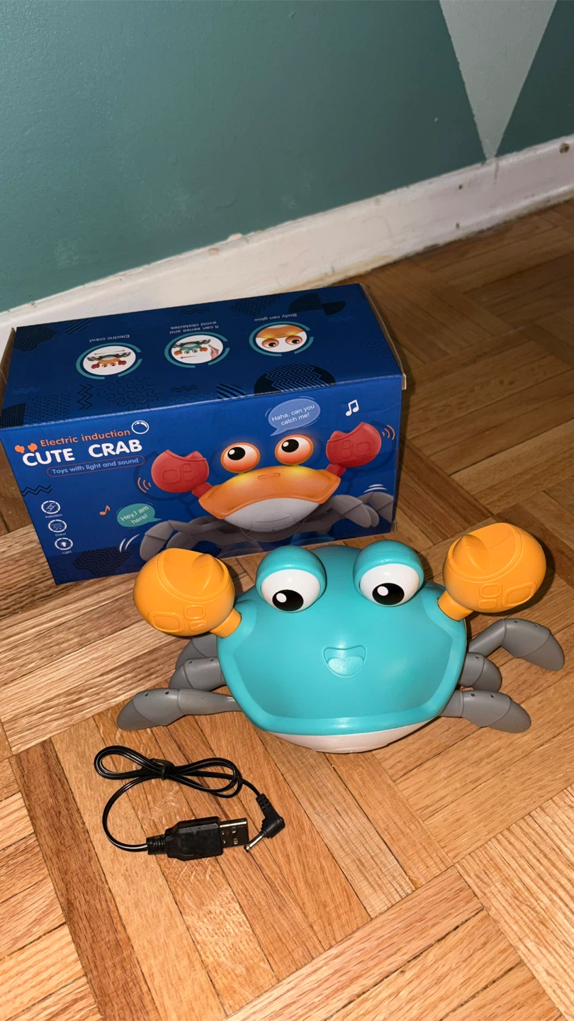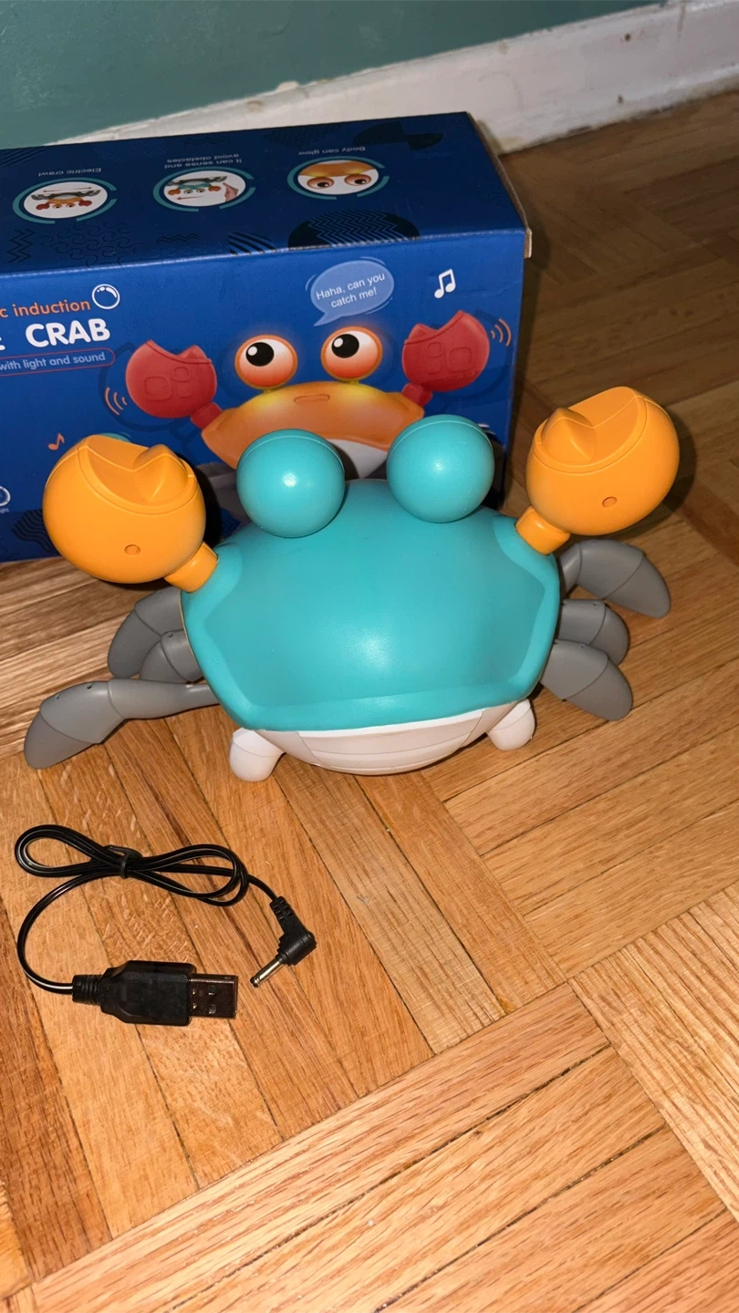 Selling an electric induction cute crab toy! It comes with light and sound features for extra fun. The box and charger are included too!