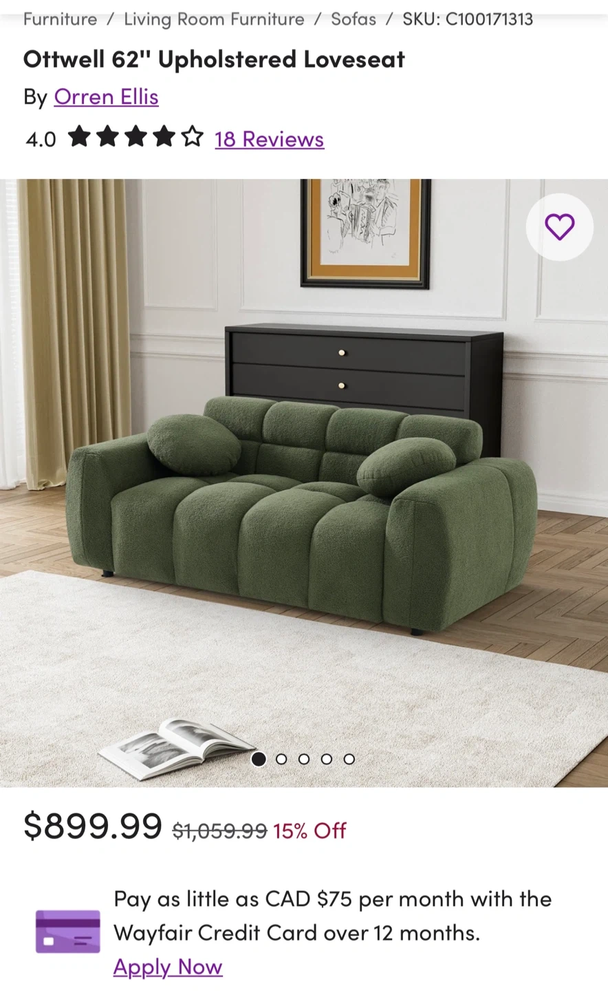 The loveseat features: