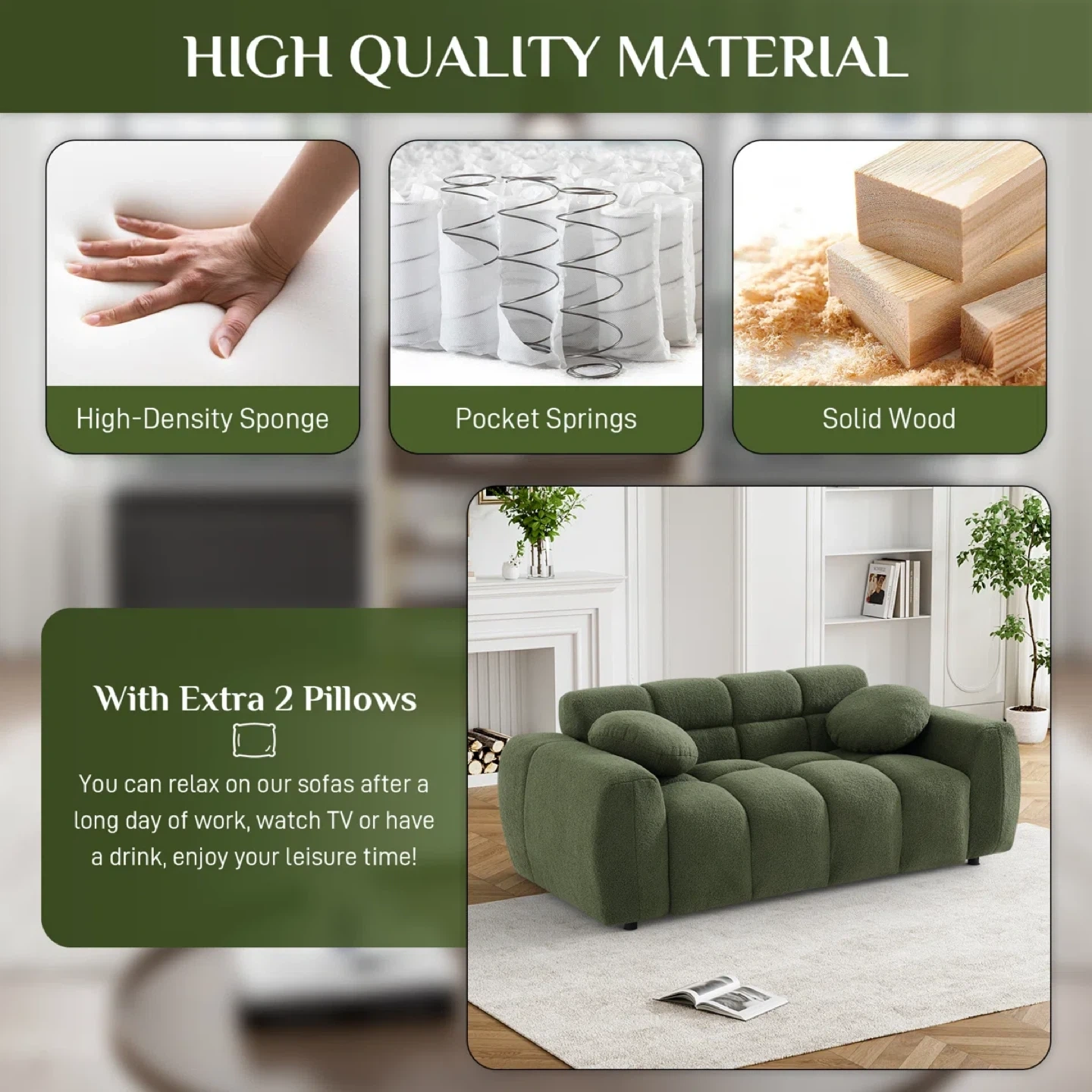 - Includes two extra pillows