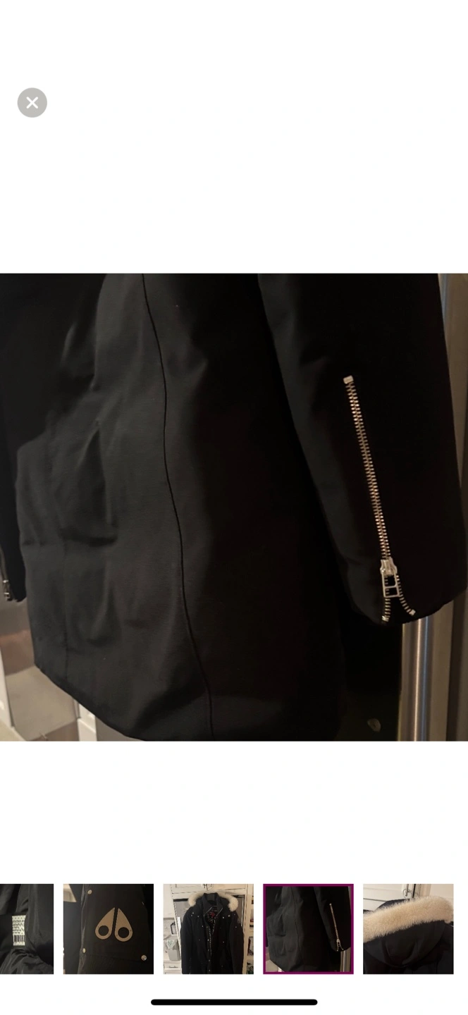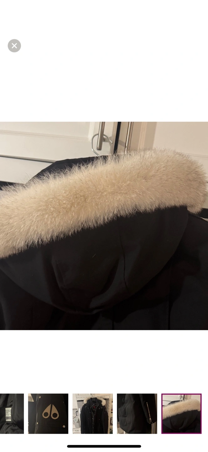 Selling a Moose Knuckles black winter jacket. It's in great condition and ready to keep you warm this winter! The jacket features a fur-trimmed hood and the Moose Knuckles logo on the sleeve