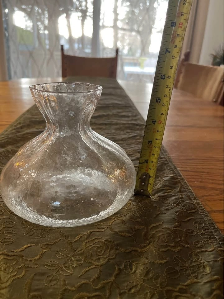 Beautiful hand-crafted clear glass vase made by SEA of Sweden. Features a unique textured/hammered ice-glass finish and an elegant rounded silhouette. Perfect as a bud vase, table accent, or minimalist dΓ©cor piece. Details: β€’ Height: 7.5 inches β€’ Top opening: 3.75 inches β€’ Widest width: Approx. 8–9 inches β€’ Material: Hand-formed glass (hammered texture) β€’ Maker’s mark: SEA of Sweden label intact β€’ Condition: Excellent β€” no cracks or chips πŸ“ Pickup: South Clearbrook area β€” near Red Apple Store & Family Pizza πŸ‘‰ Won’t respond to β€œIs this available?” Please PM with same-day pickup ETA to hold. πŸ’° Bring exact cash only πŸ‘‰ All sales are final