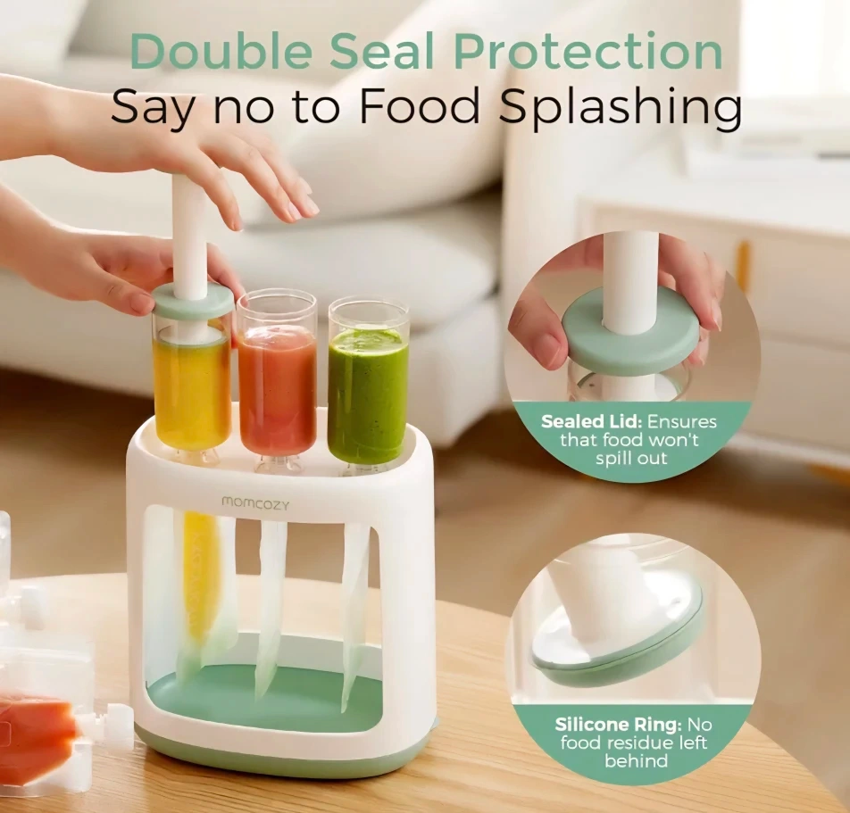 Momcozy Squeeze Station For Homemade Baby Food, Pouch Filling Station For Puree Food For Babies &Toddlers, No Food Splashing, Dishwasher Safe, BPA-Free, With Reusable Bags!