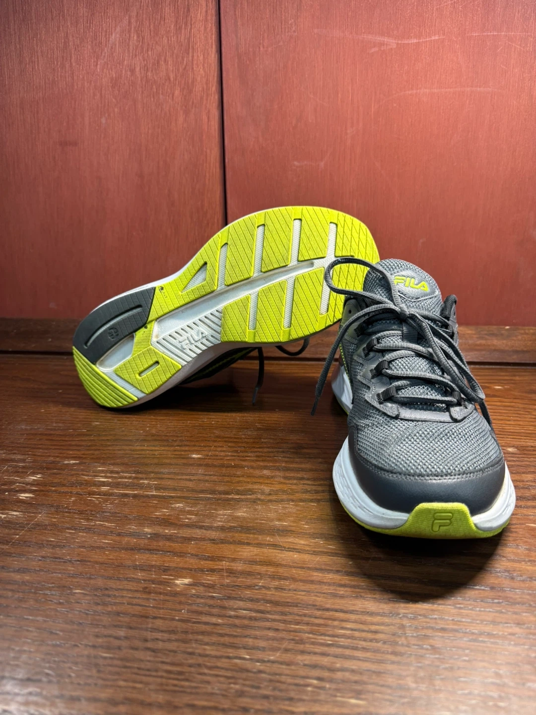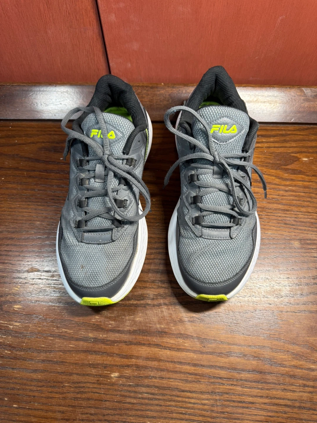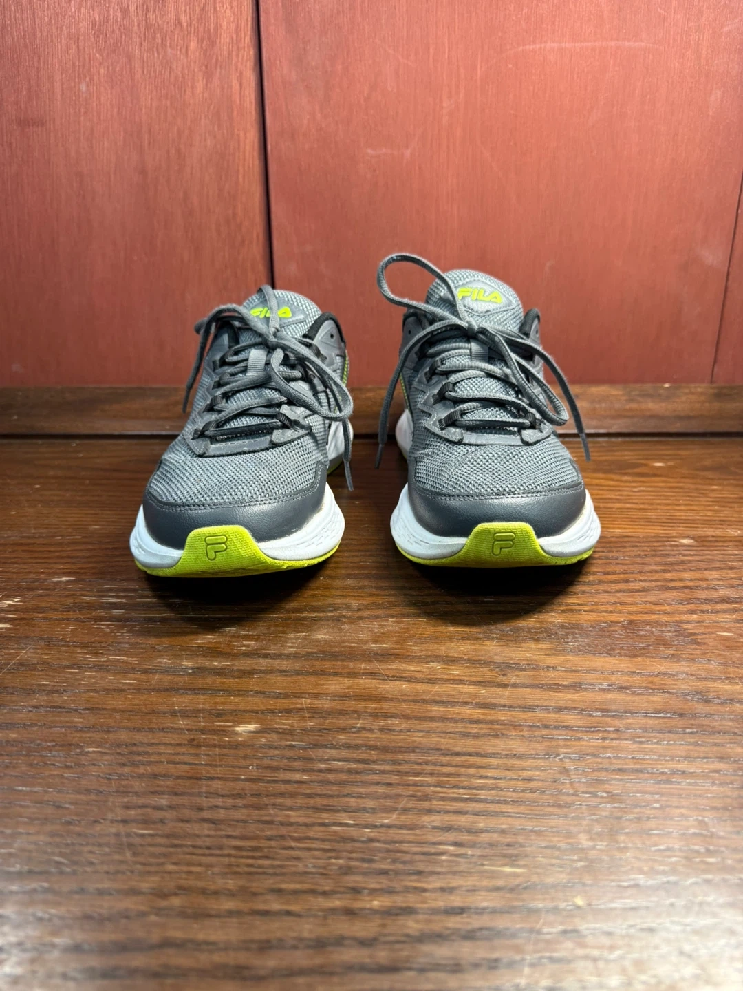 Get ready to sprint into action with these Fila running shoes, perfect for hitting the pavement or the treadmill! These shoes are size 8 and feature a stylish gray and green colour scheme. While they've been on a few adventures, they're still in good shape and ready for many more miles.
