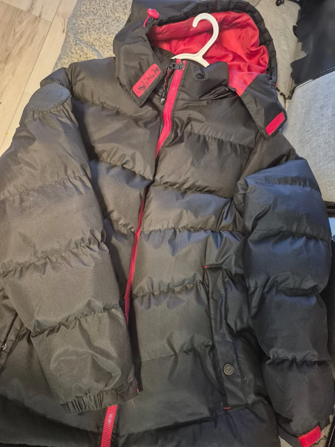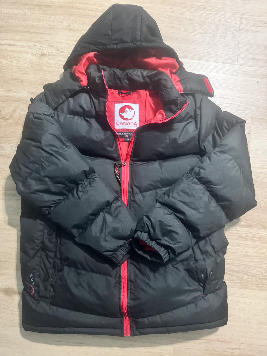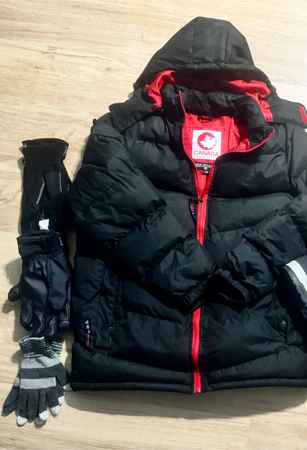 I'm selling a Canada Weather Gear puffer jacket in size L. It's black with red accents. It's in great condition and perfect for the cold weather!