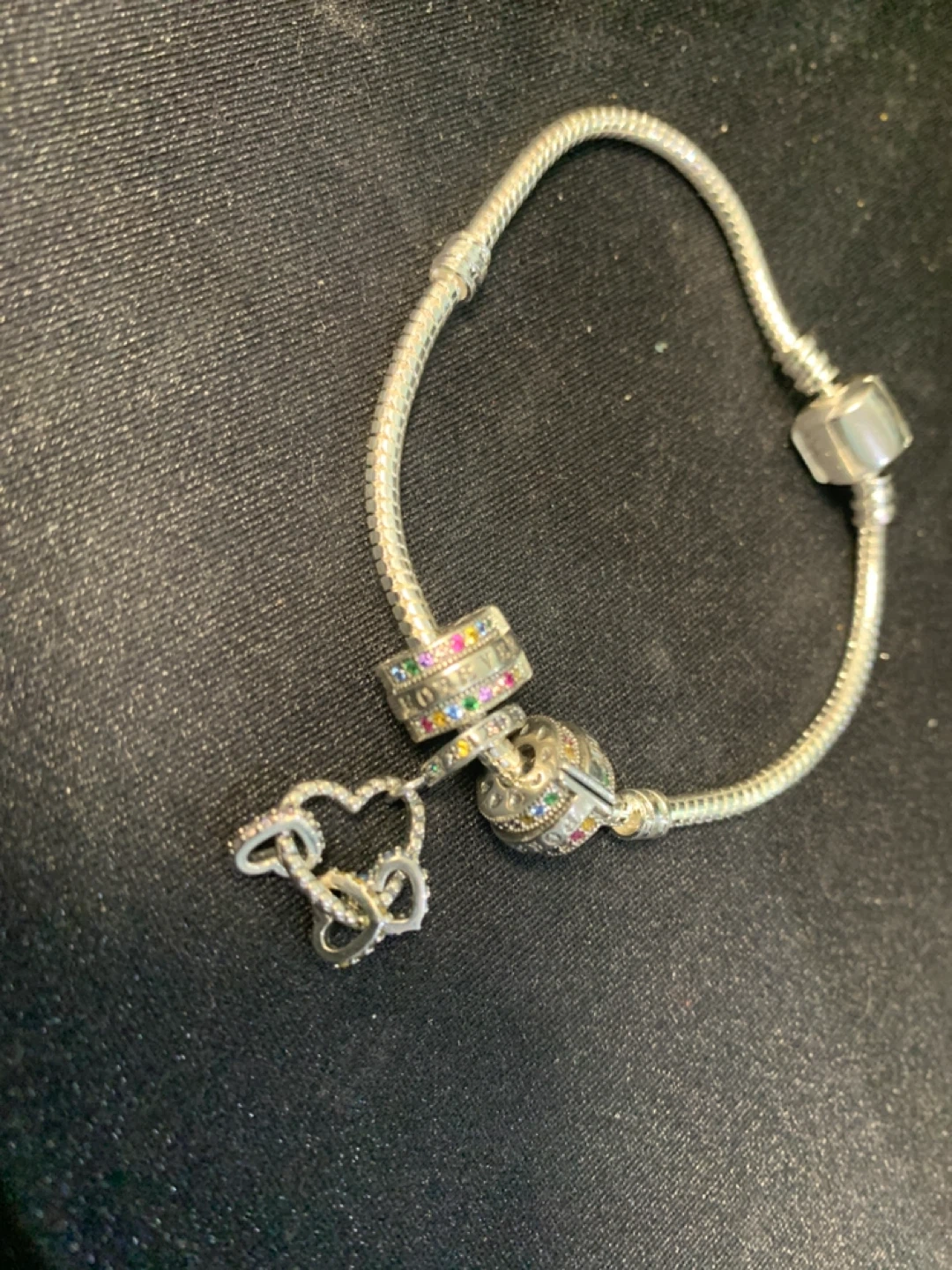 Selling both S925 charms and bracelet in great condition! It features a silver chain with various colourful charms. Perfect for adding a touch of sparkle to any outfit
