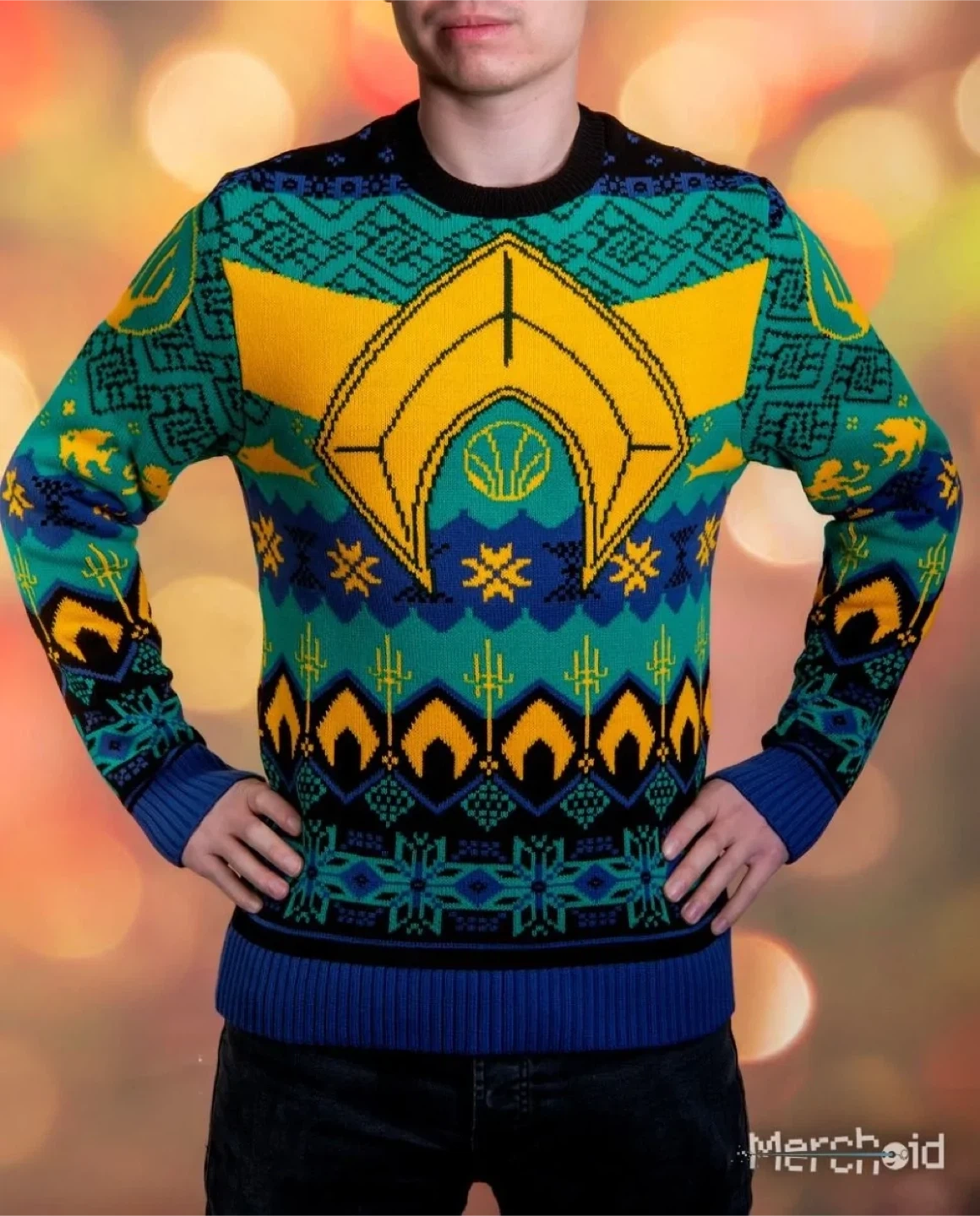 Get ready to make a splash this holiday season with this official Aquaman Christmas jumper, size medium! Completely brand new. This festive knit features iconic Aquaman-themed designs, perfect for fans of the DC superhero. It's new and in excellent condition, ready to bring some superhero cheer to your winter wardrobe. Who needs Santa when you can rock an Aquaman Christmas sweater? It's so geek chic it hurts! This jumper is waiting to make your holidays legendary. Don't let it swim away! If the ad is up, it's still available!