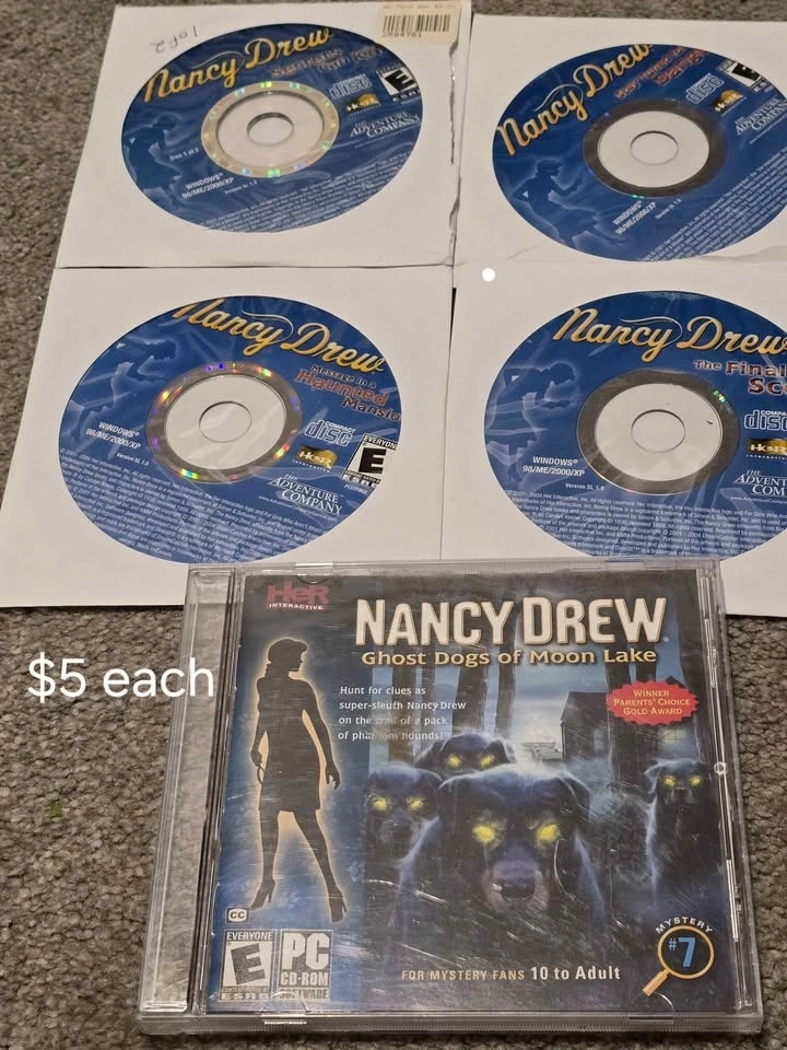 Classic Nancy Drew PC CD-ROM games in great condition. Perfect for collectors or fans of the series.