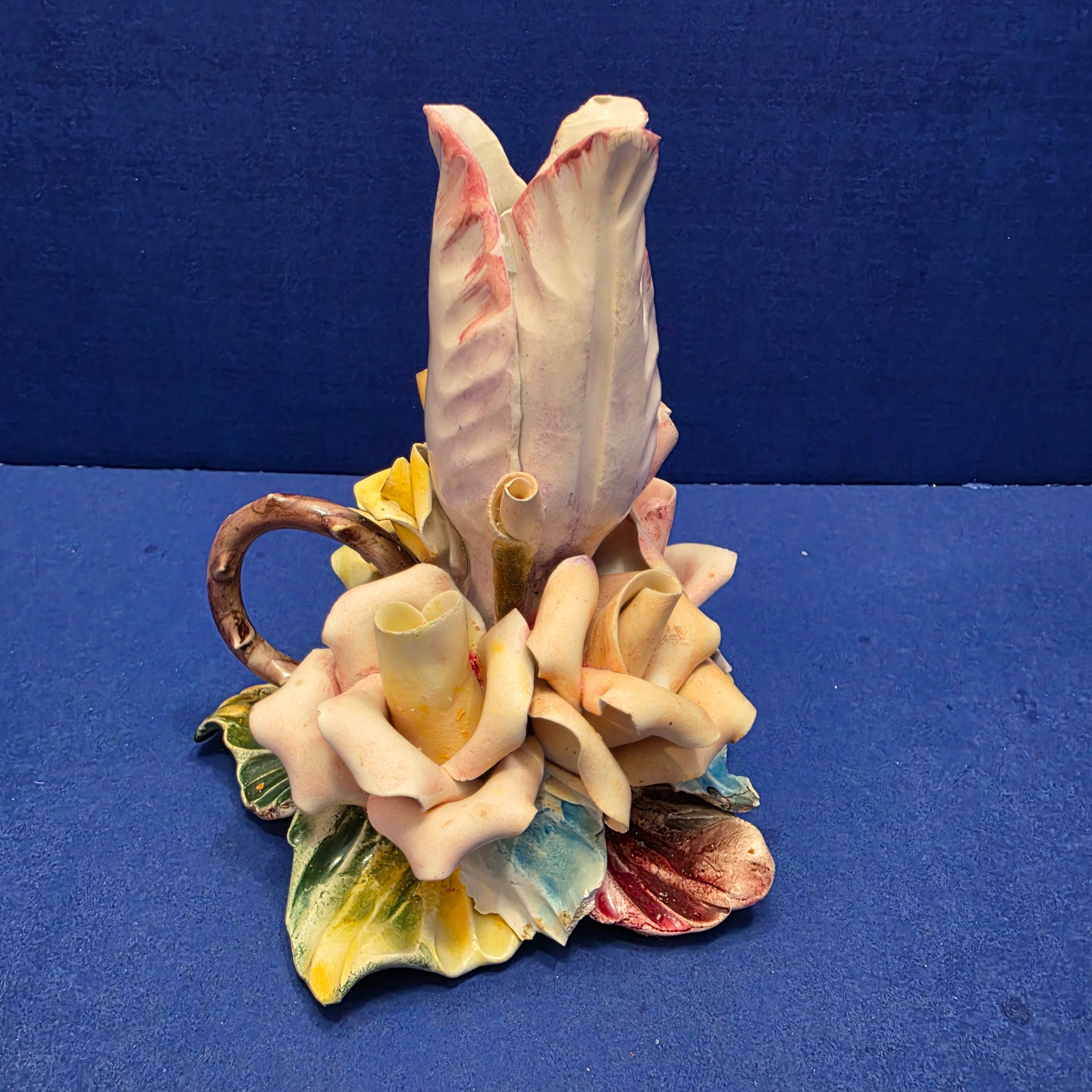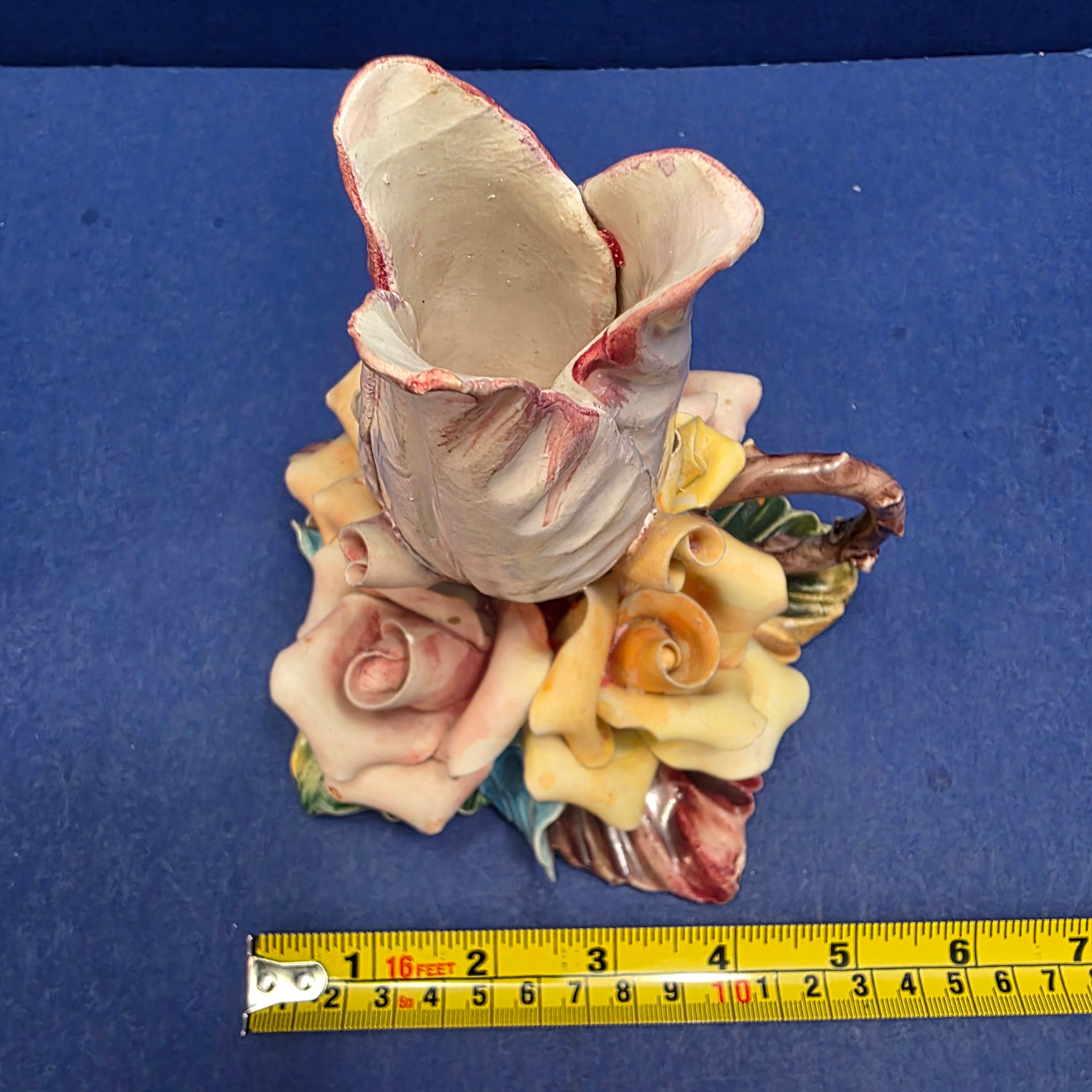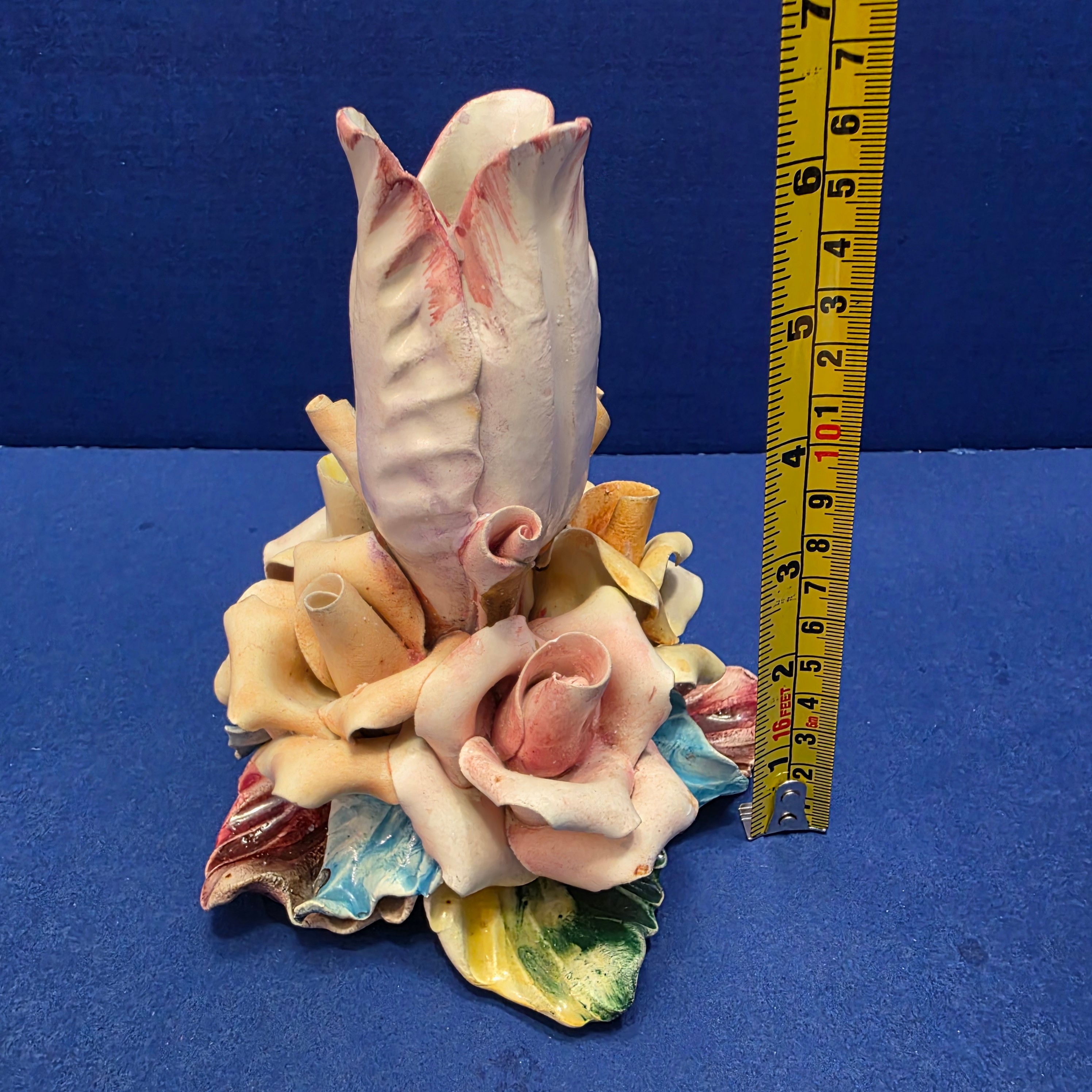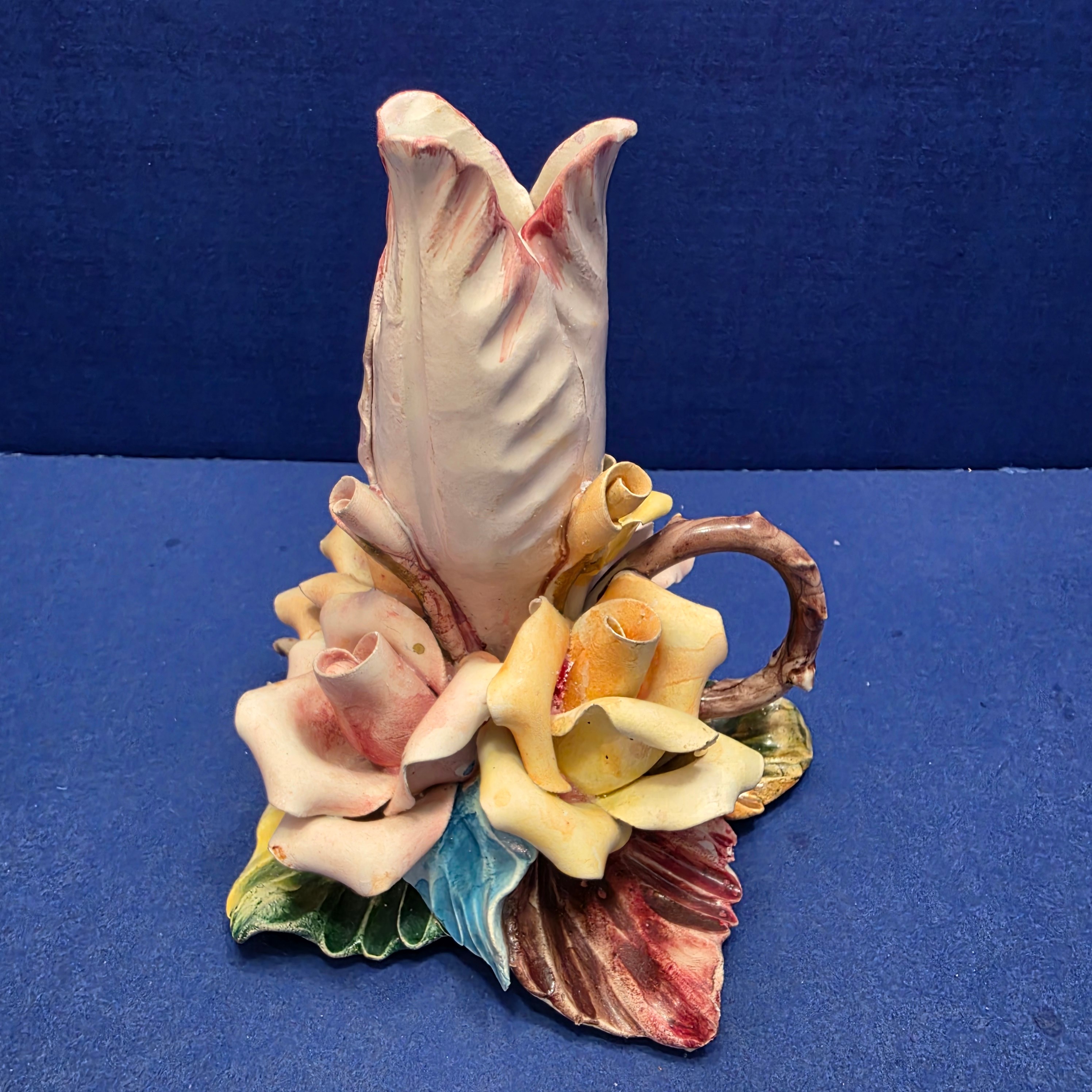 Vintage Italian Capodimonte Biscuit Porcelain Rose Flower Candleholder – Only $20