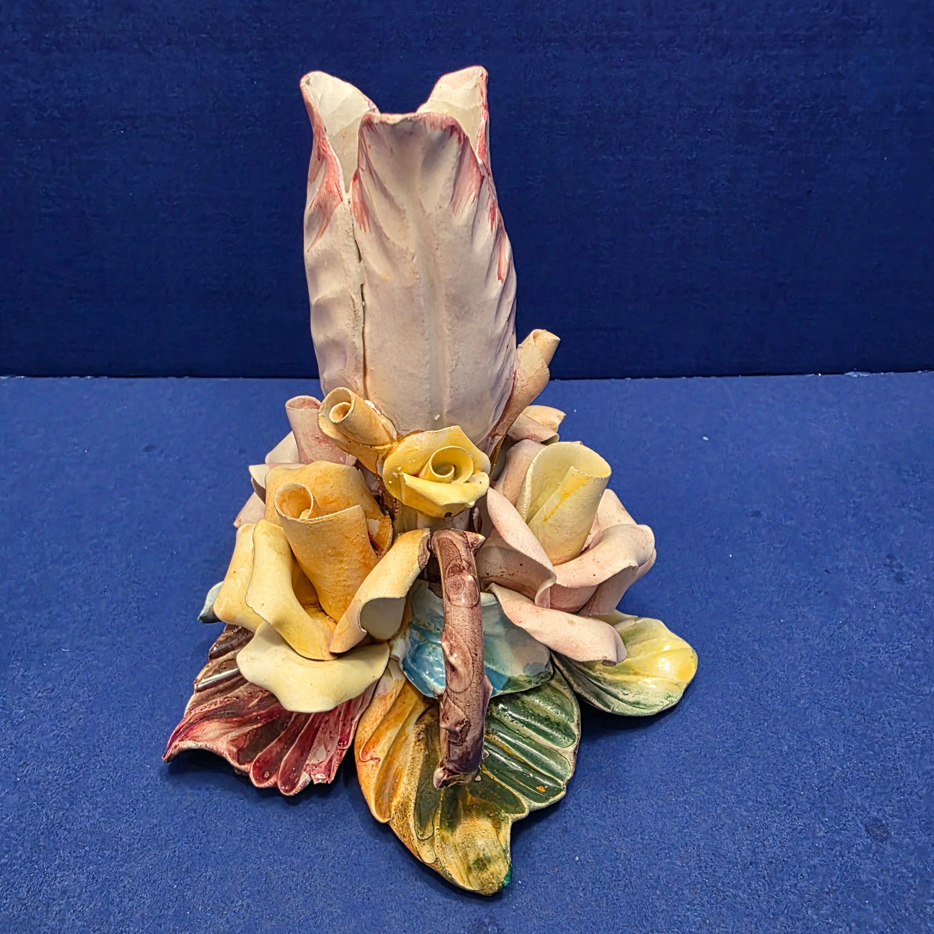 Vintage Italian Capodimonte Biscuit Porcelain Rose Flower Candleholder – Only $20
