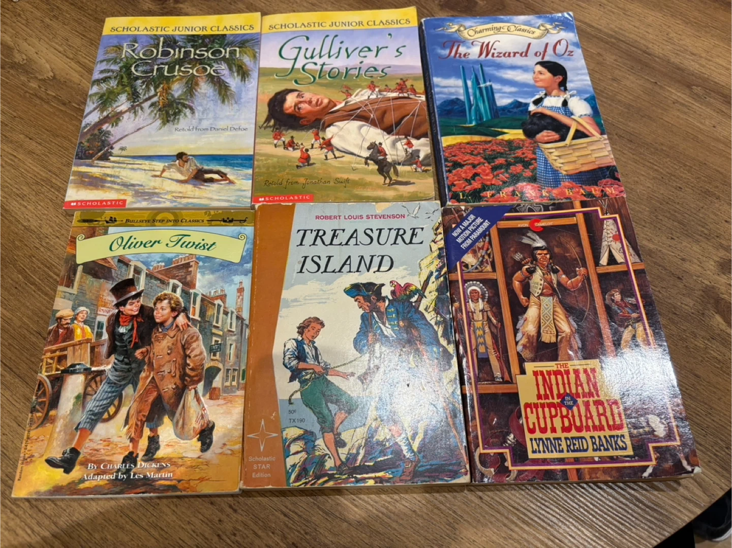 A wonderful introduction to beloved literary classics. Includes: Robinson Crusoe, Gulliver’s Stories, Wizard of Oz, Oliver Twist, Treasure Island, and Indian in the Cupboard.