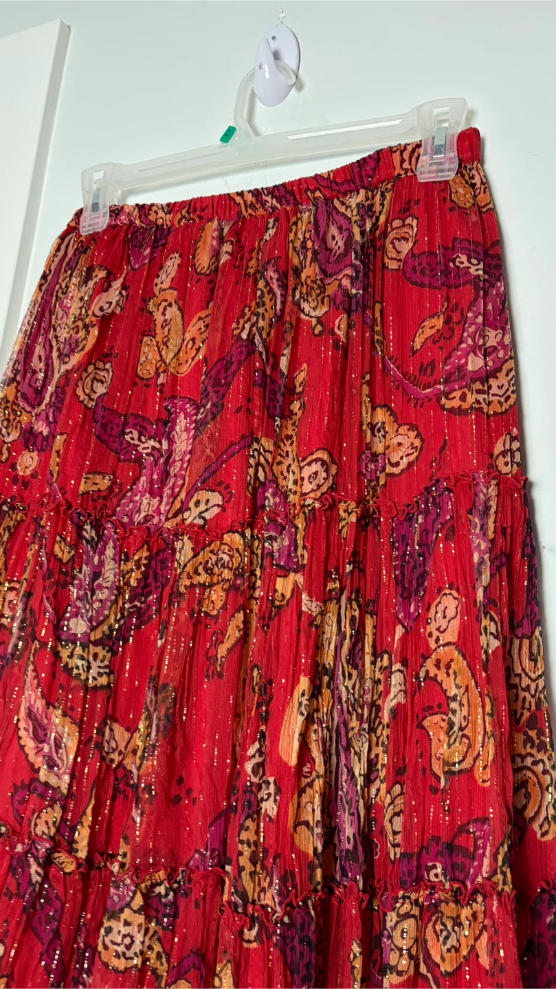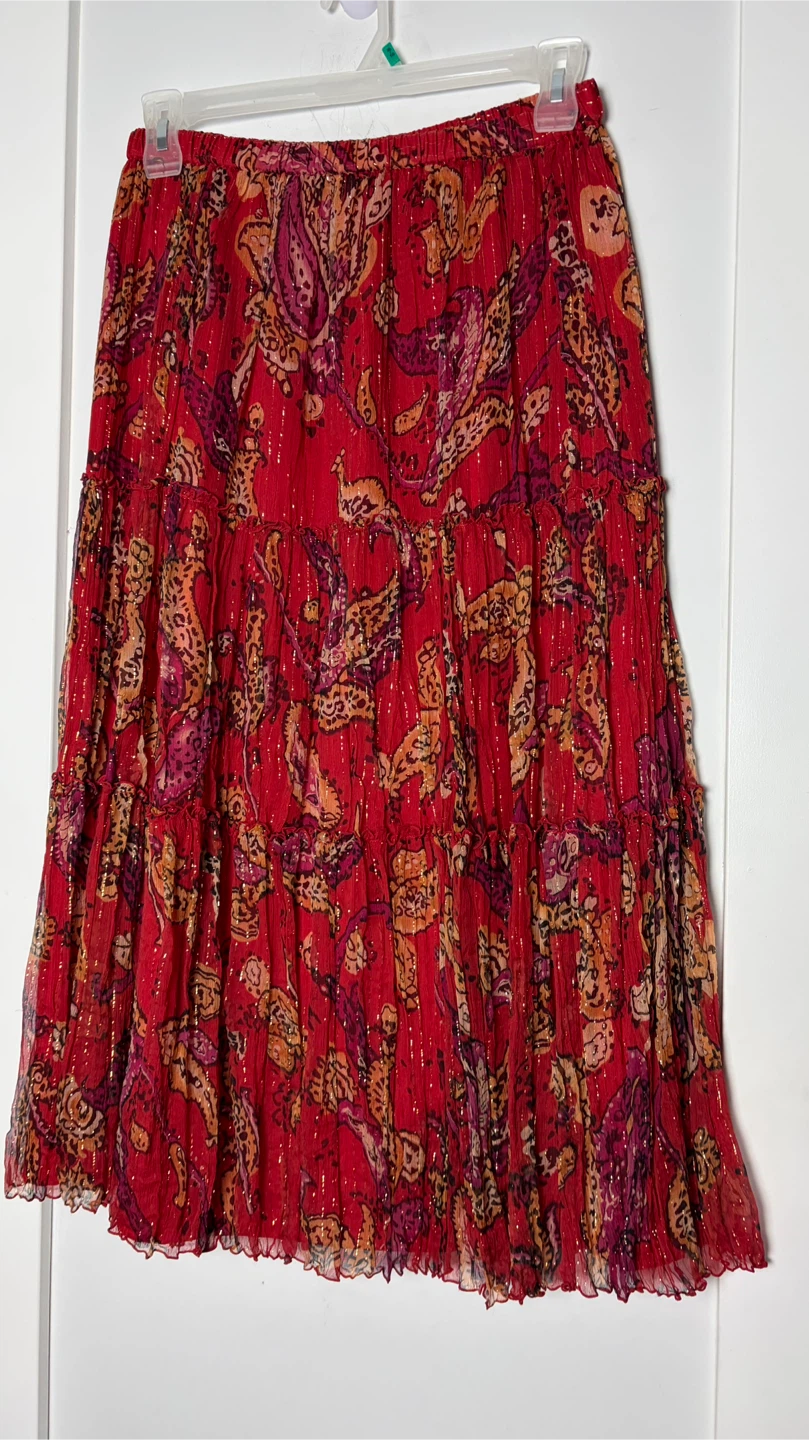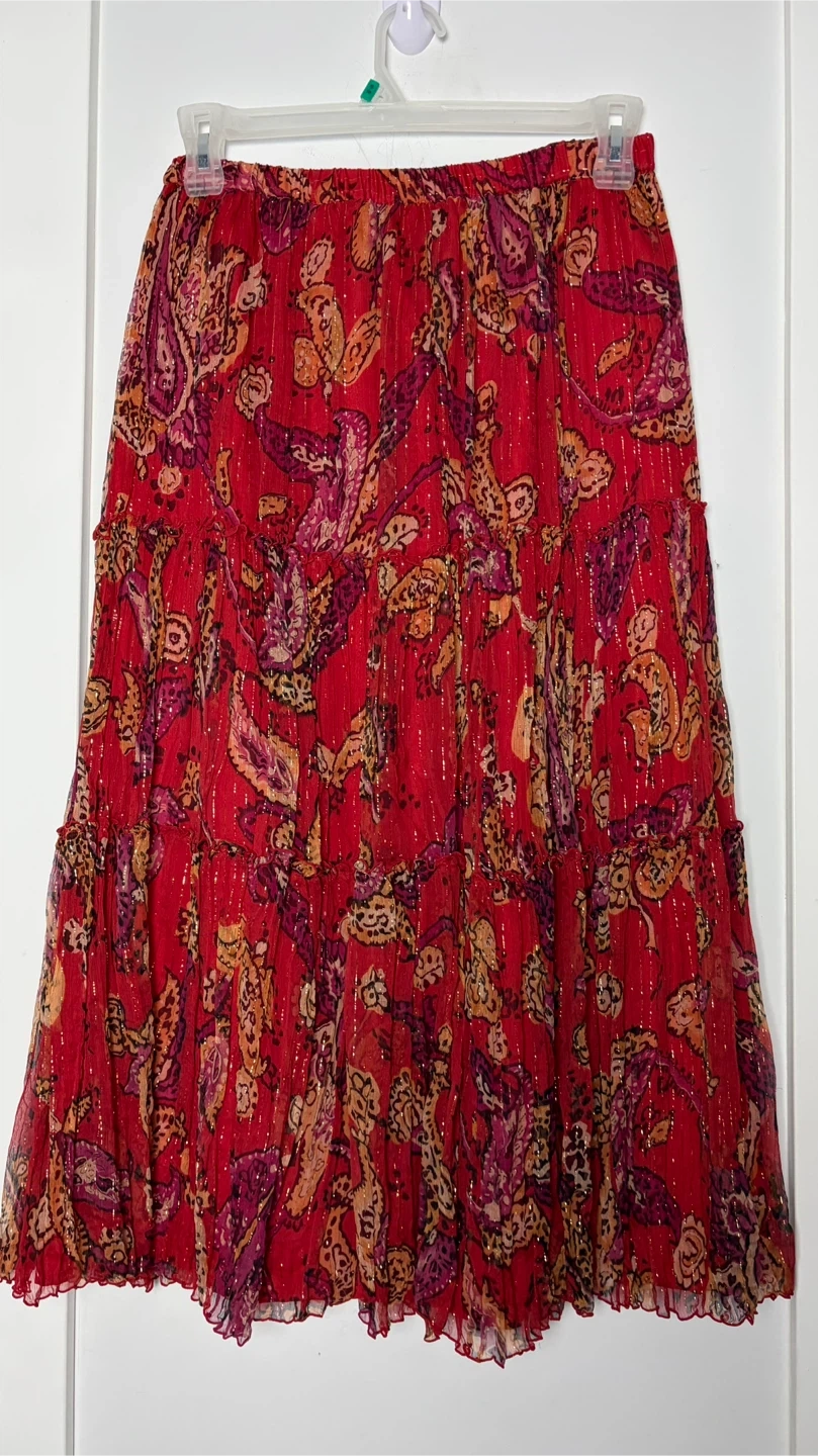 This elegant red paisley skirt is perfect for any occasion. Its vibrant design adds a touch of sophistication to your wardrobe.