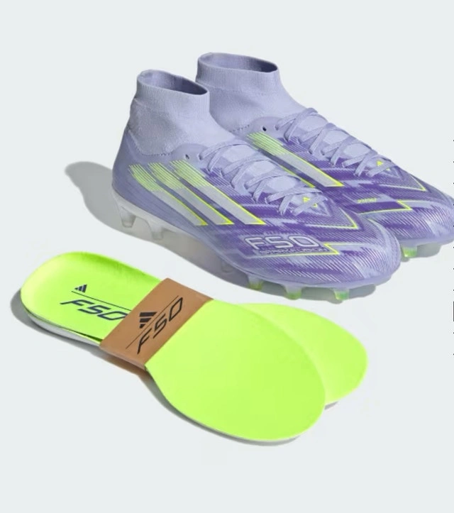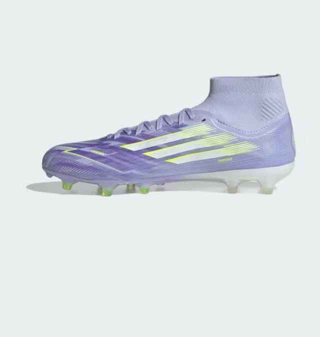 Size 7.5 Adidas lavender soccer cleats, featuring striking white and neon accents! These cleats are in excellent condition, ready to help you showcase your fancy footwork. The high-top design ensures a snug, supportive fit, while the soleplate delivers exceptional traction on the field. I'm parting ways with these because I've simply outgrown them.
