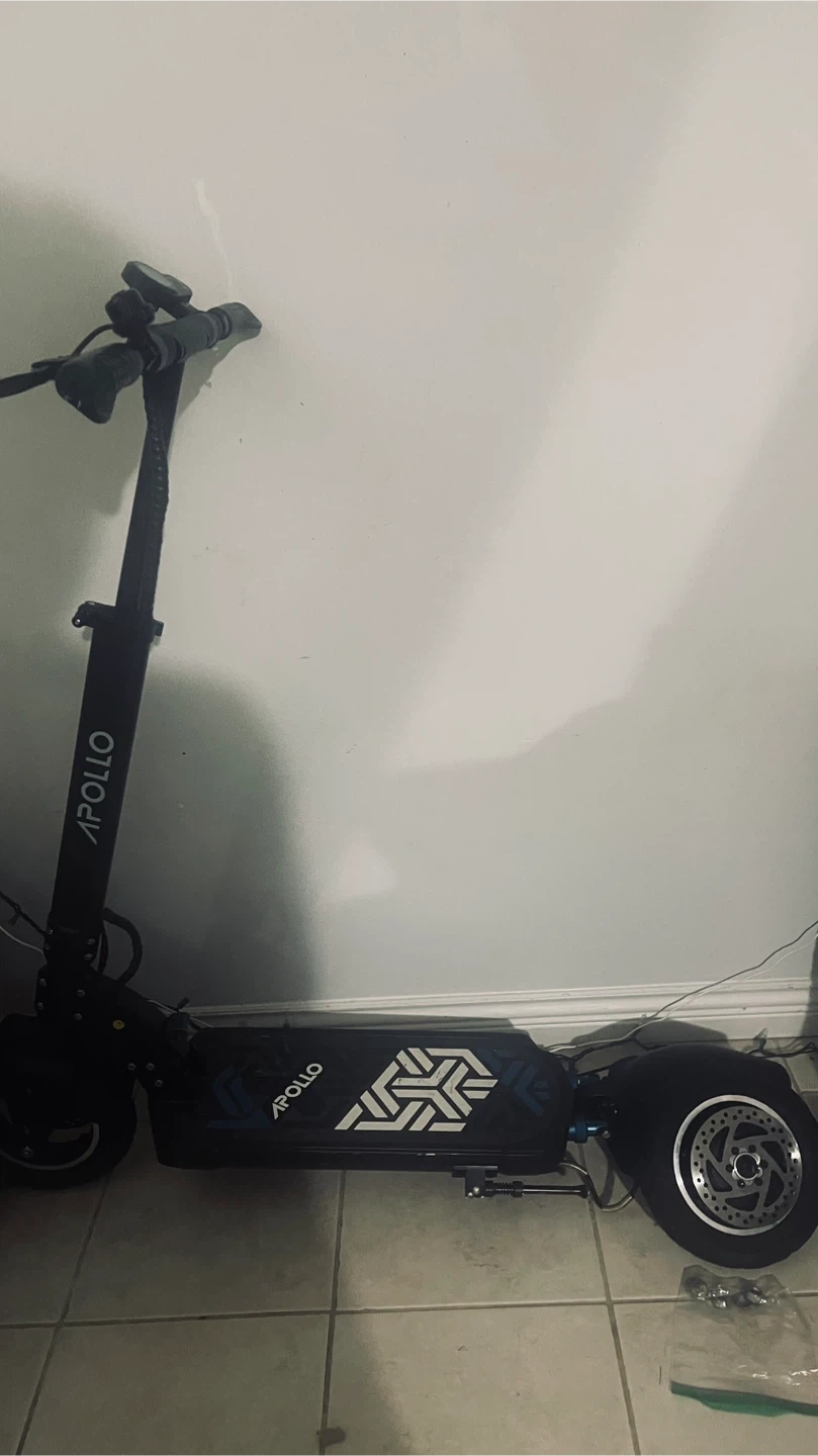 Selling an Apollo electric scooter. It just need some fixes like the stem handle is loose a bit which can be fix . Front brake is off and back brake need some fixes which is fixable and also the motor is in great condition and back inner tube tire is popped which is $20 off Facebook marketplace ( i took parts of it so you don’t gotta struggle)