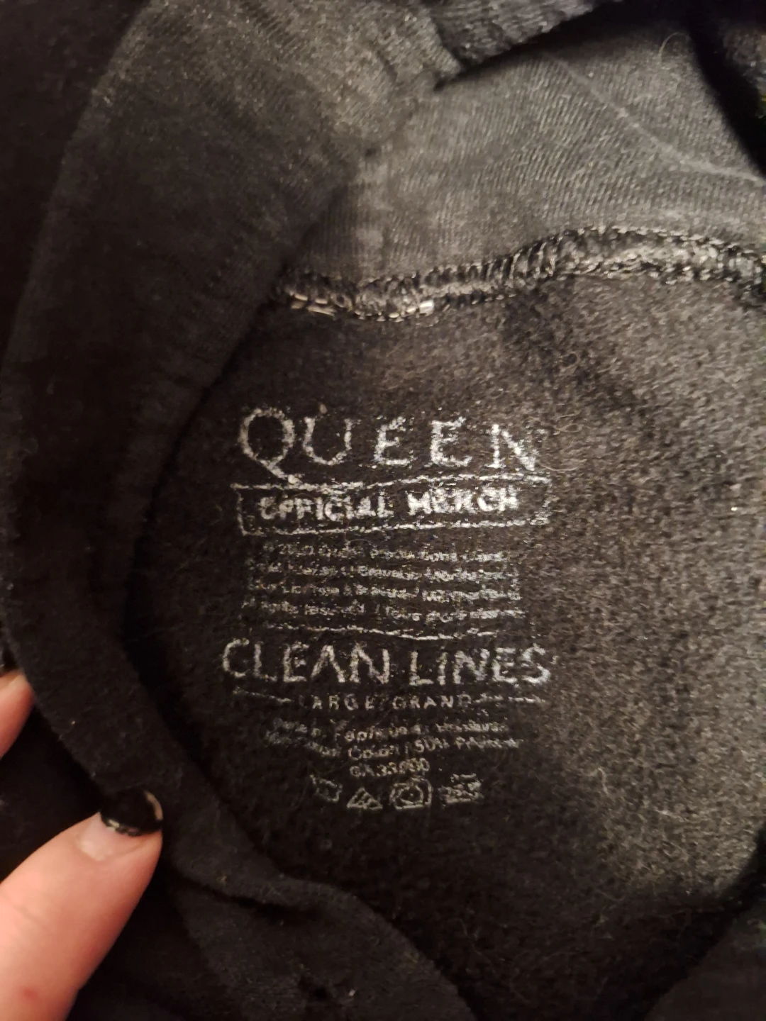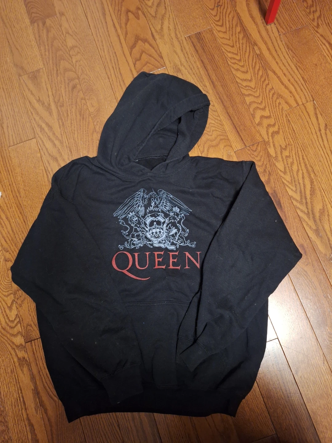 Selling a Queen Official Merch hoodie in black. It's a size large and made by Clean Lines. Missing hoodie string, everything else perfect. Heavy, strong quality. Can sell for about $100 new. Great for any Queen fan!