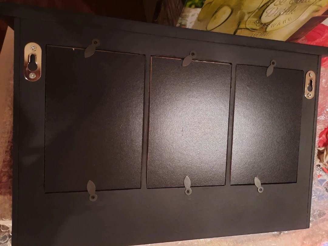 It's a cute way to display your favourite photos and also hang your keys or small items whilst keeping your hallway organized. It holds three 6" x 4" Photos/Reminders. Hanging Hardware attached and is ready to add a touch of charm to your home.