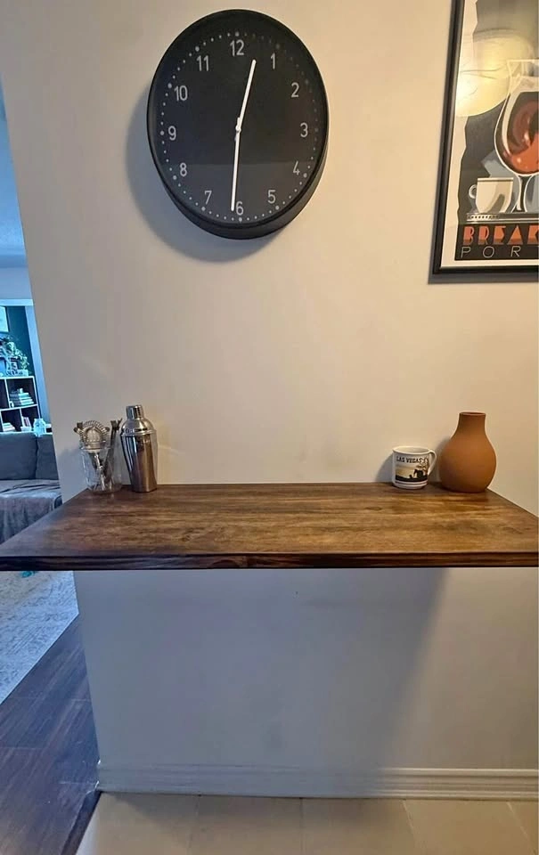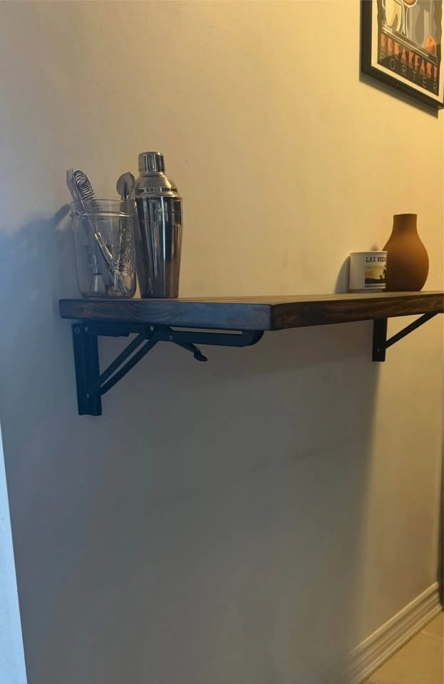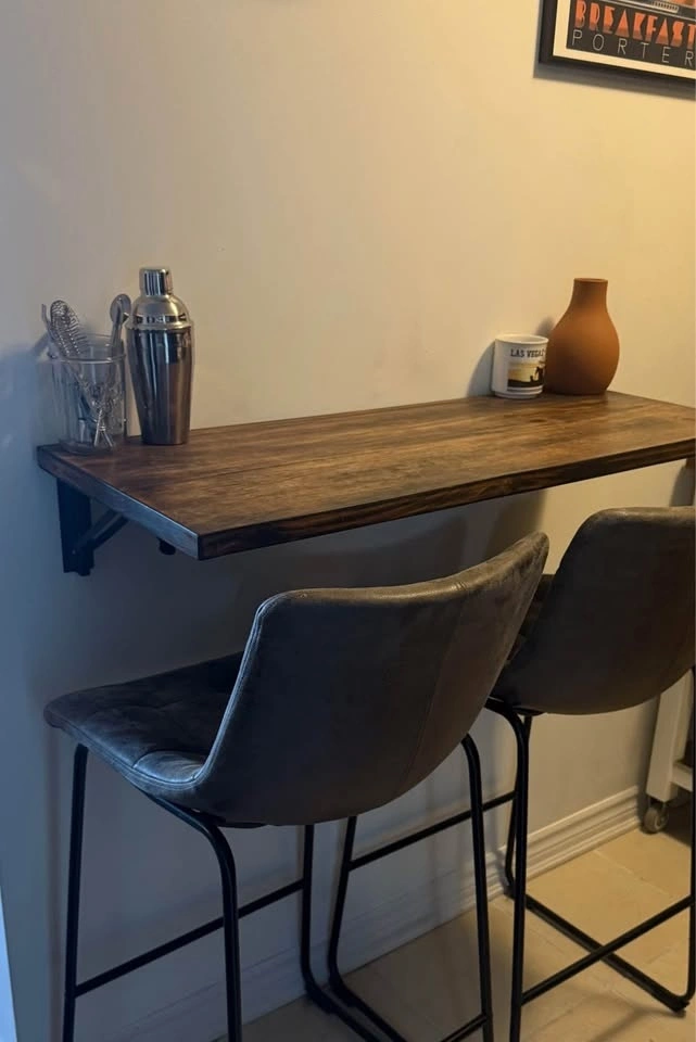 Great space-saving table for small kitchens or apartments. Mounts to the wall and folds down when you’re not using it.