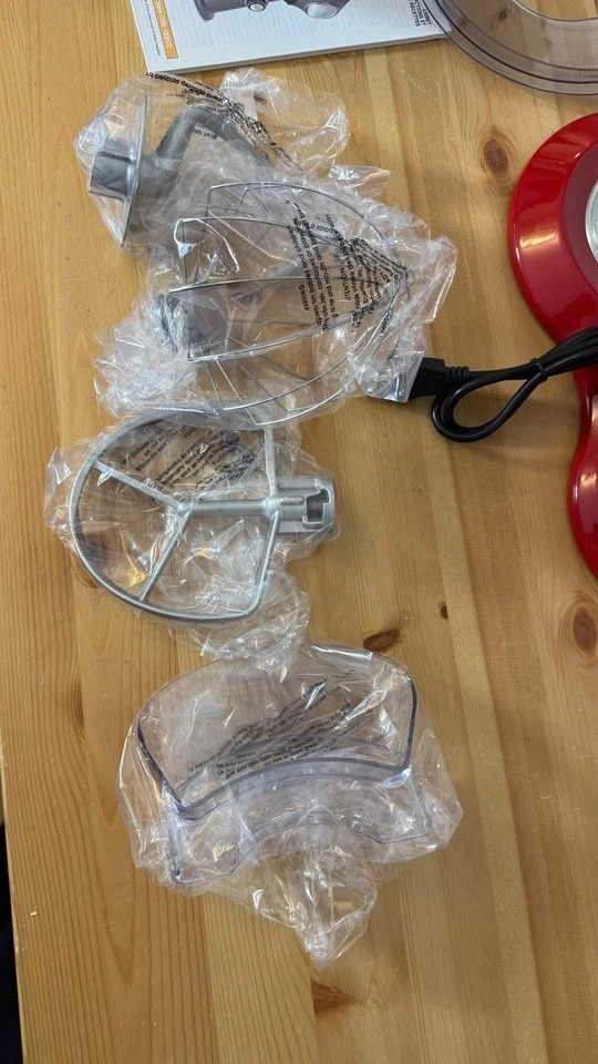• Includes dough hook, chef’s whisk, and flat mixing paddle