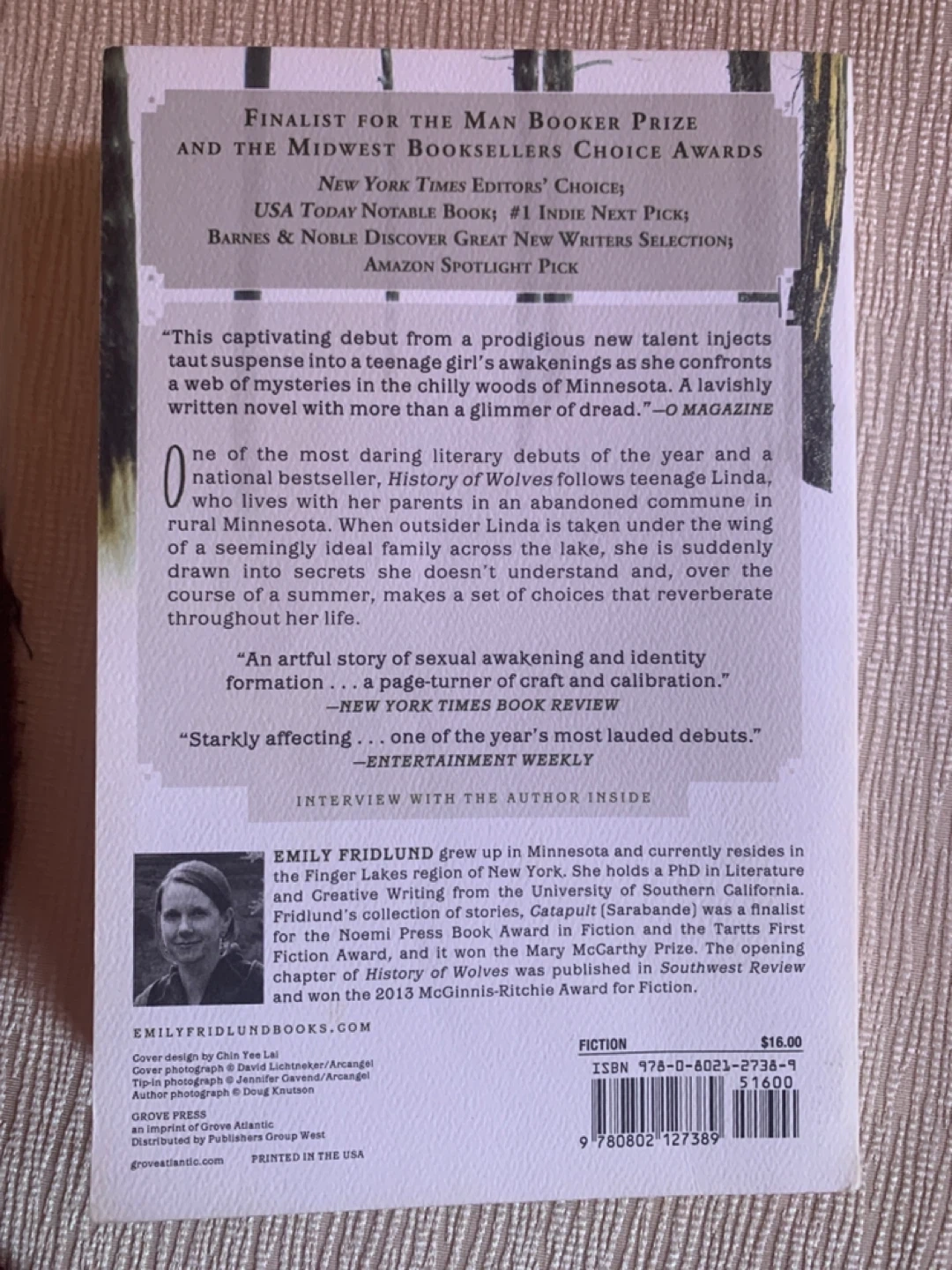 Selling a copy of "History of Wolves" by Emily Fridlund. It's a national bestseller and was a finalist for the Man Booker Prize! The book is in great condition and ready for a new reader