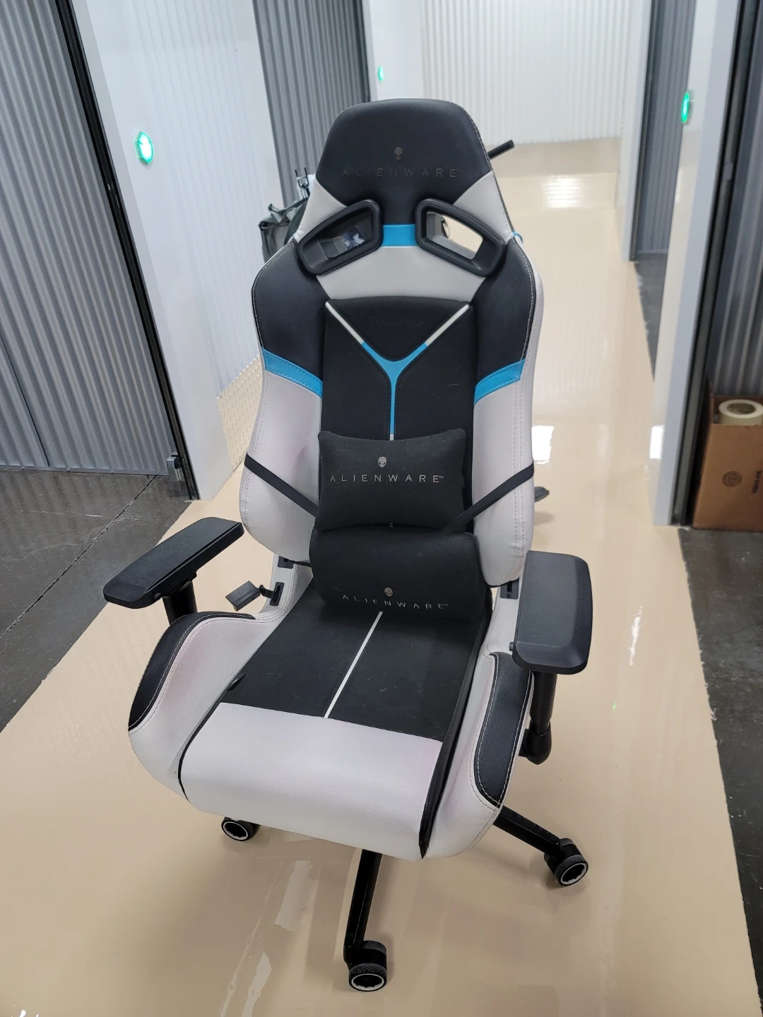 Looking to sell my Alienware gaming chair! It's in great shape and super comfy for those long gaming sessions or work days. Features a sleek black, white, and blue design that will look great in any setup. Comes with the lumbar support pillow as well!