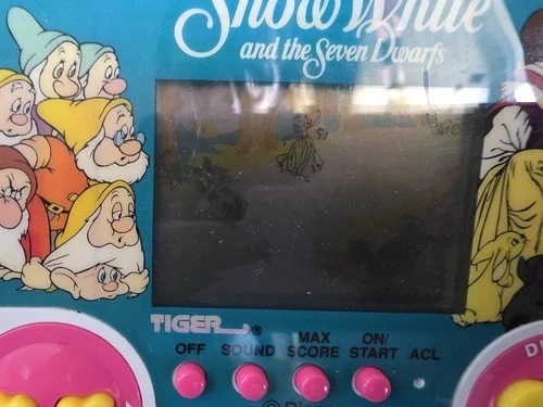 Vintage 1990 Tiger Electronics Snow White Handheld Game. Relive classic Disney magic with this nostalgic handheld game! Featuring Snow White and the Seven Dwarfs, this 1990 Tiger Electronics gem delivers simple, fun LCD gameplay straight from your childhood. Comes with the original strap but the fastener on one side is missing (see photos). Fully tested & working. Classic retro collectible for Disney fans and vintage gamers alike!